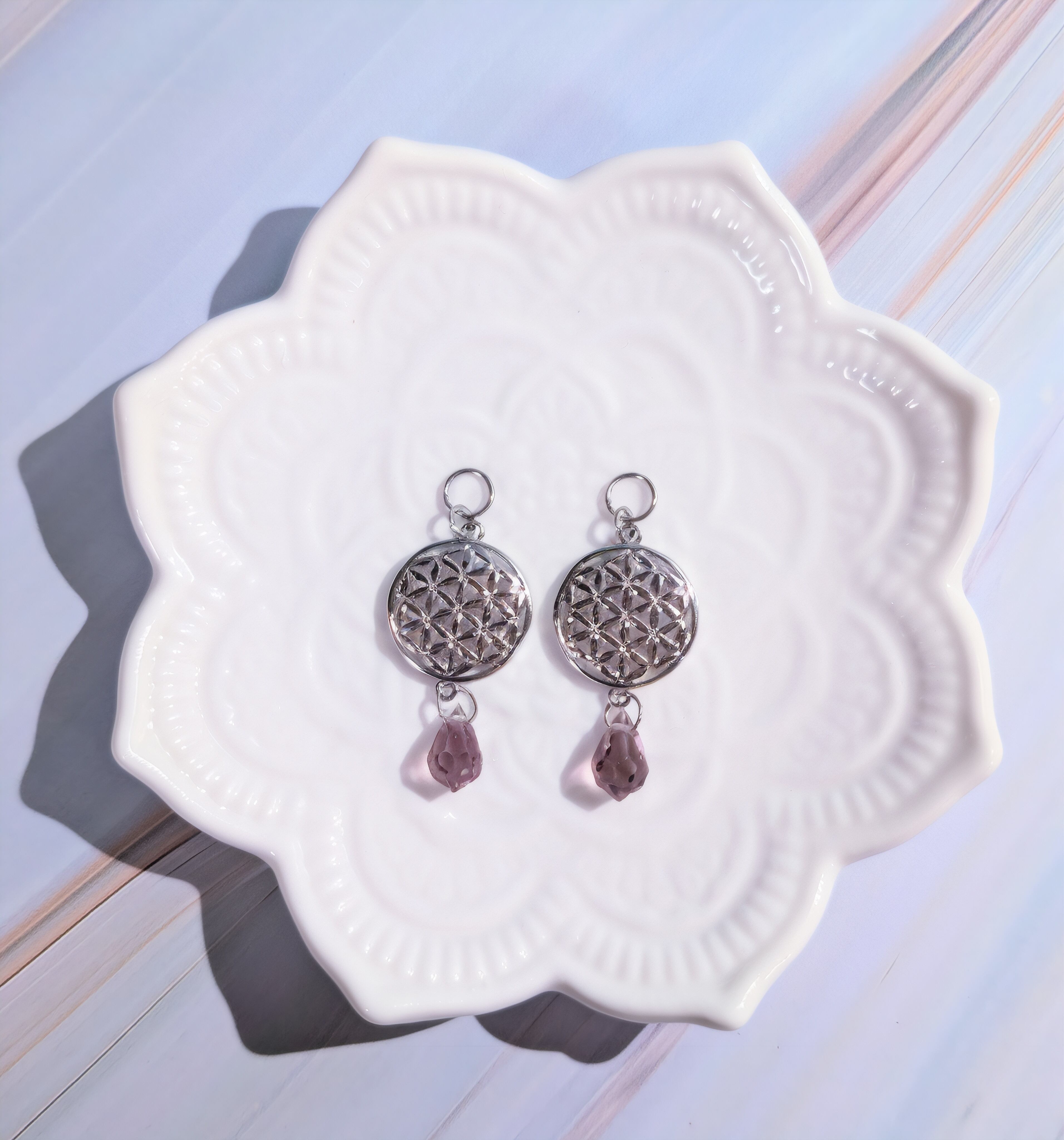 フラワーオブライフ&スワロフスキードロップチャームしずくスリムチャーム・ピアス・イヤリング・イヤーカフ