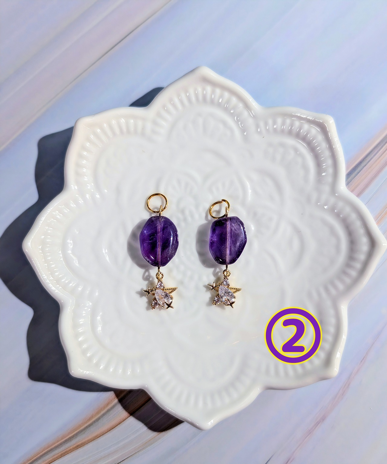 アメジストとシトリンの天然石に星のパーツが揺れるチャーム