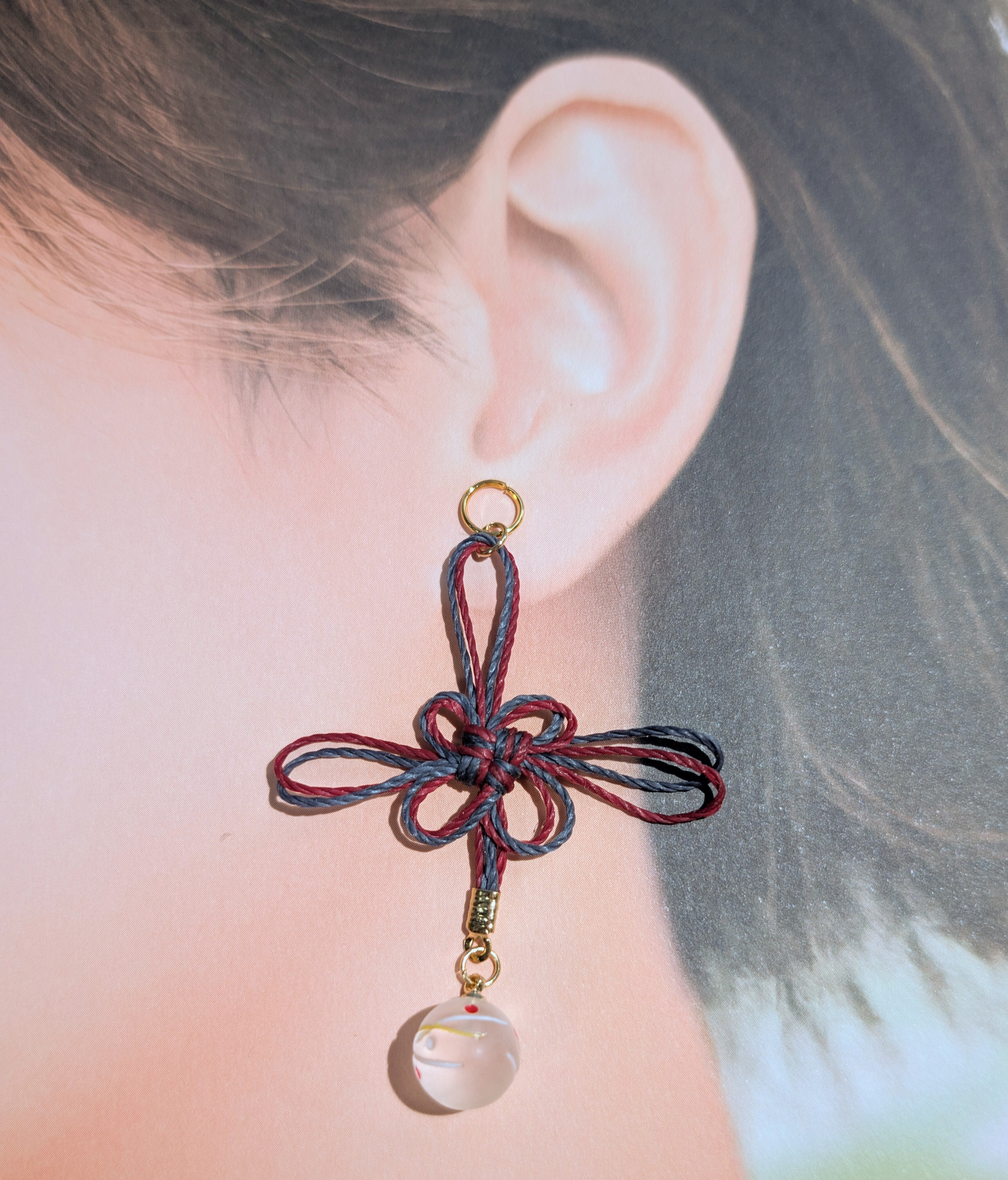 夏の忘れ物 飾り結びピアス ヨーヨーと吉祥結び しずくスリムチャーム・ピアス・イヤリング・イヤーカフ