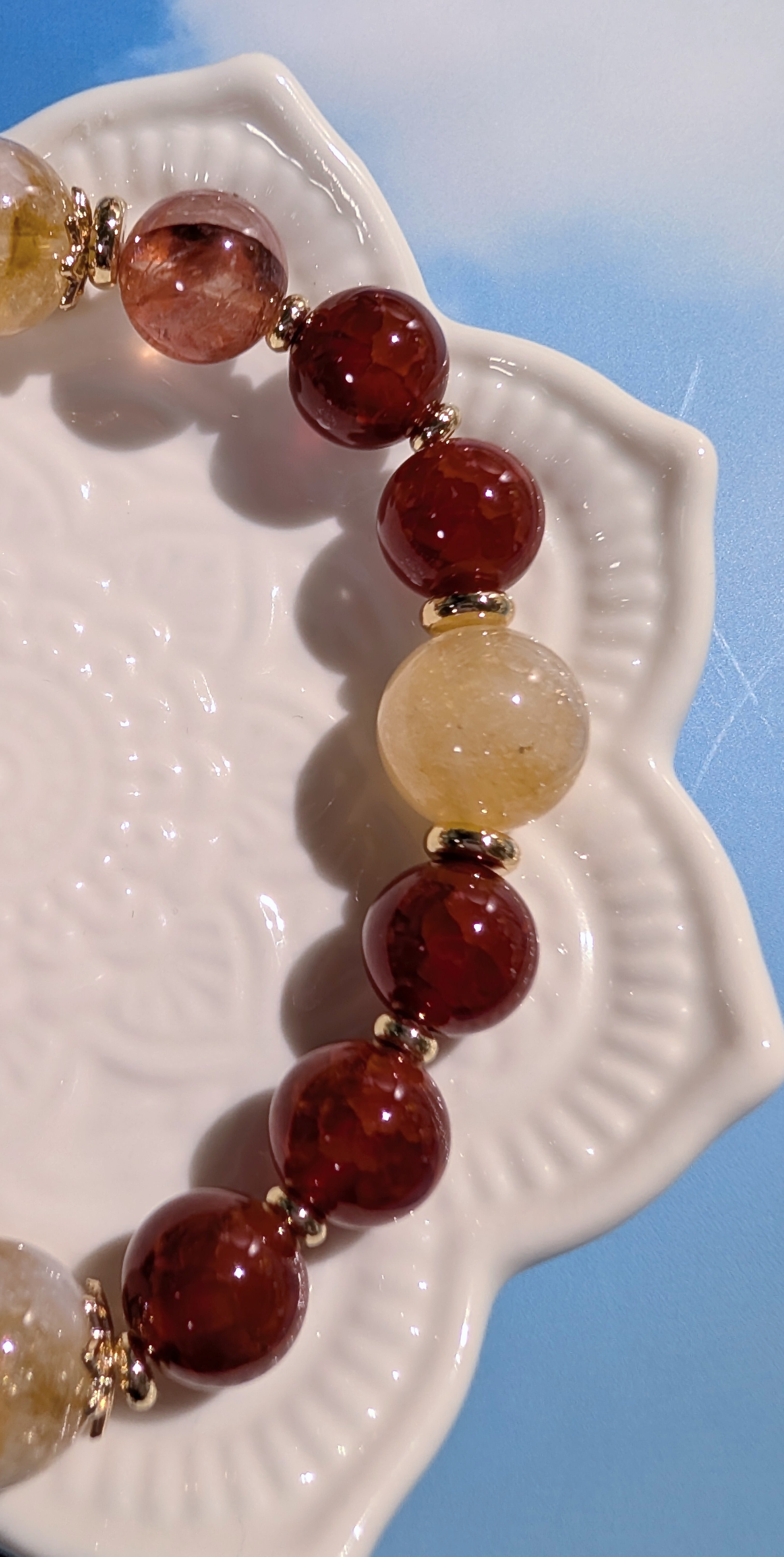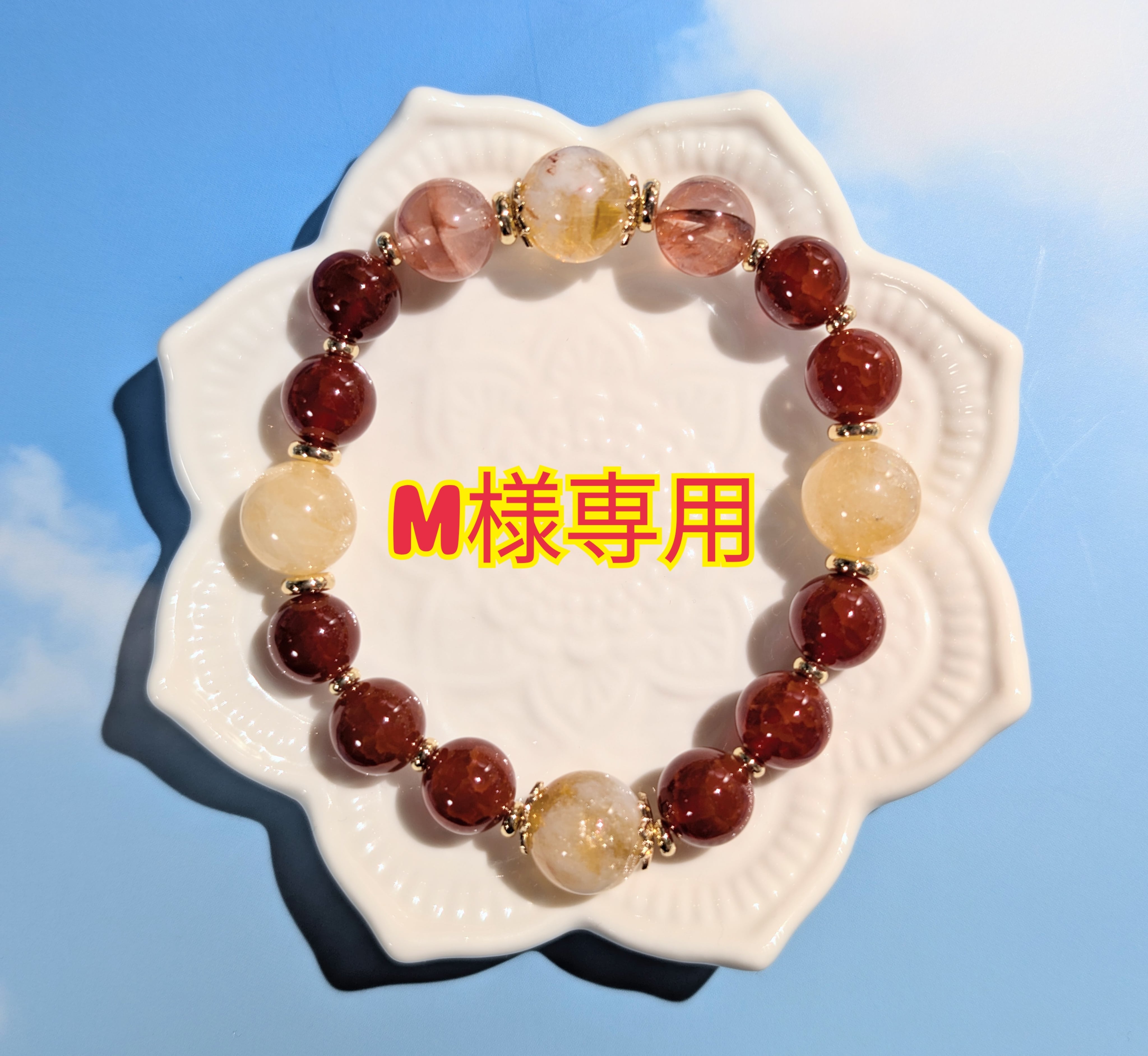 M様専用 売約済! オーダーブレスレット ファントムシトリン ルチルクォーツ レッドドラゴンアゲート レッドライモナイト念珠 ブレスレット お直し&浄化 ホワイトセージ 大神神社ご神水 クリスタルチューナー 高波動へエネルギーバランス調整済