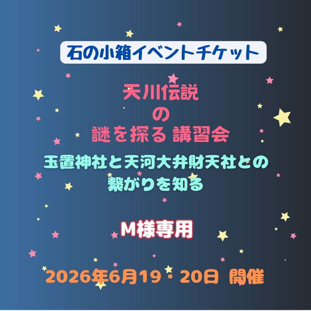 M様専 天川伝説の謎を知る 天河大弁財天社と玉置神社の繋がりを知る講習会チケット(予約金)