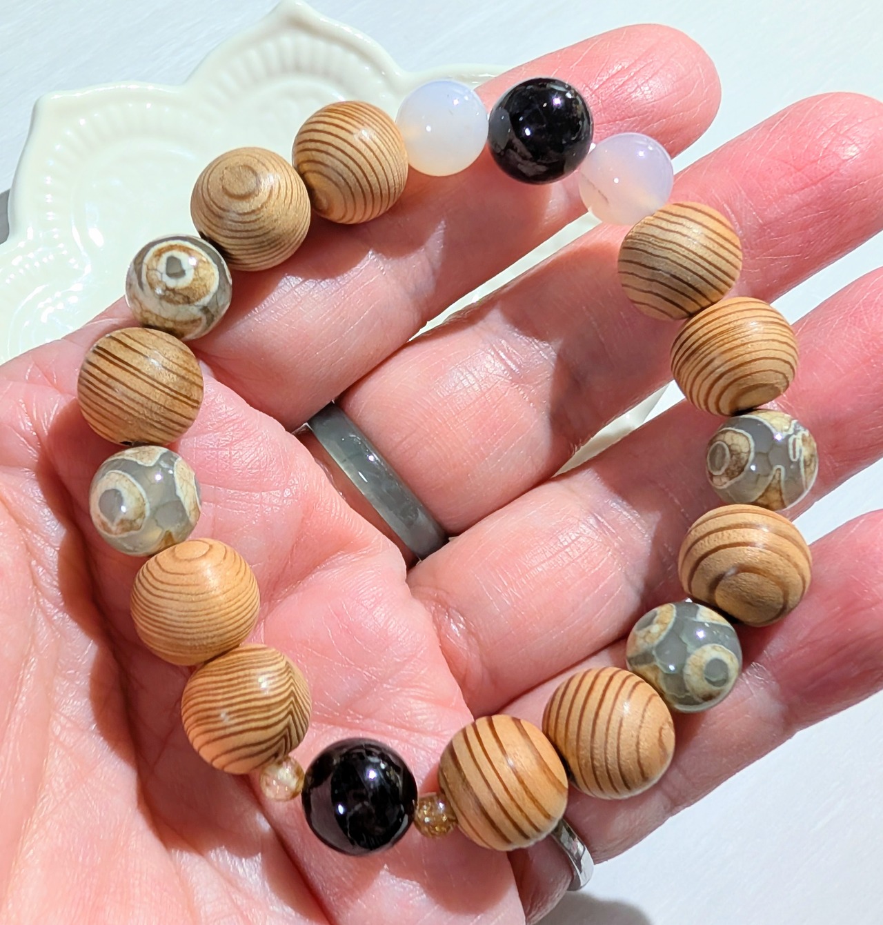N様専用 売約済 屋久杉ブレスレット 保証書証明品 ガーネット 塩源瑪瑙 ルチルクォーツ 三眼天珠