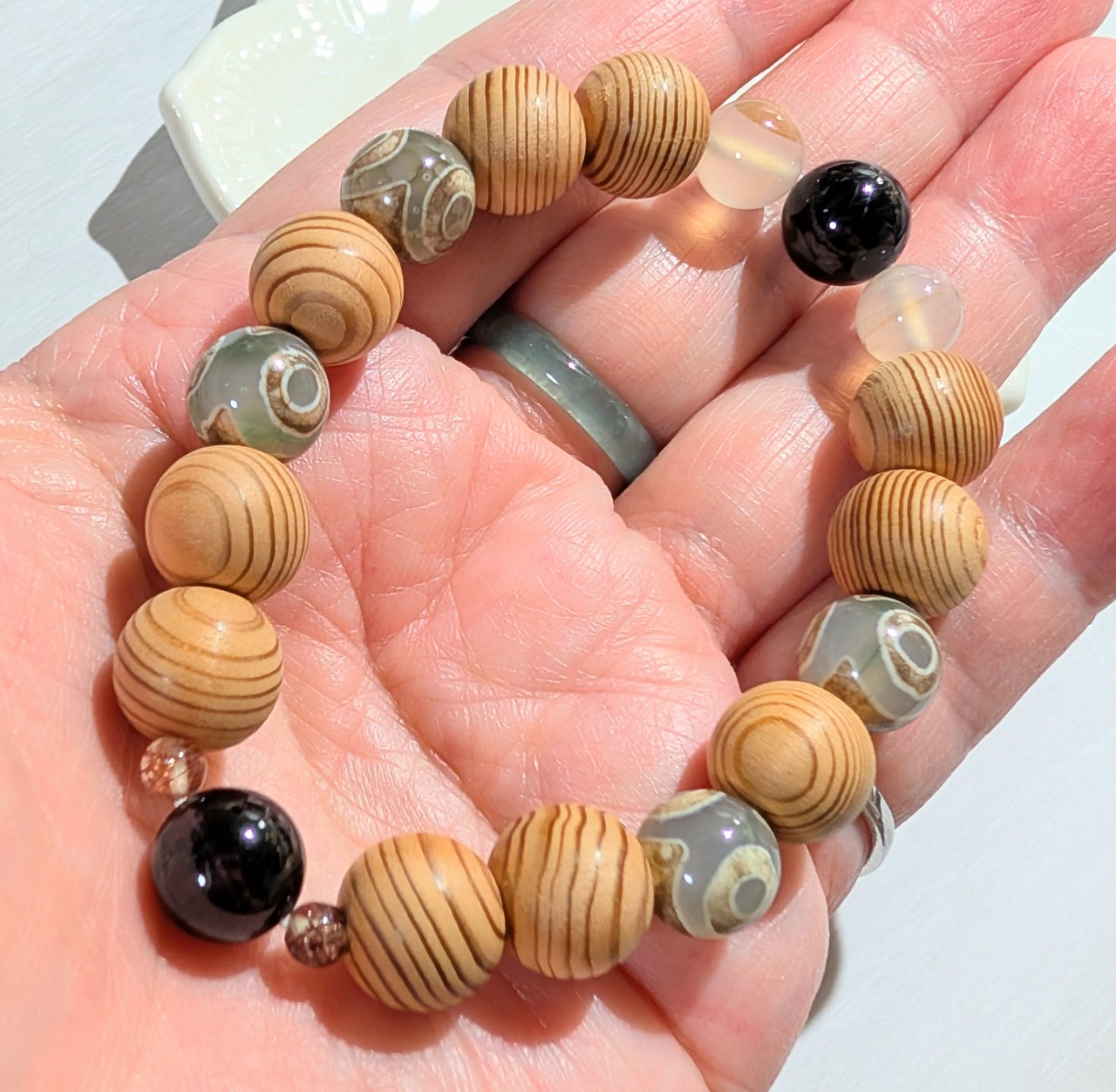 Y様専用 売約済 屋久杉ブレスレット 保証書証明品 ガーネット 塩源瑪瑙 ルチルクォーツ 三眼天珠