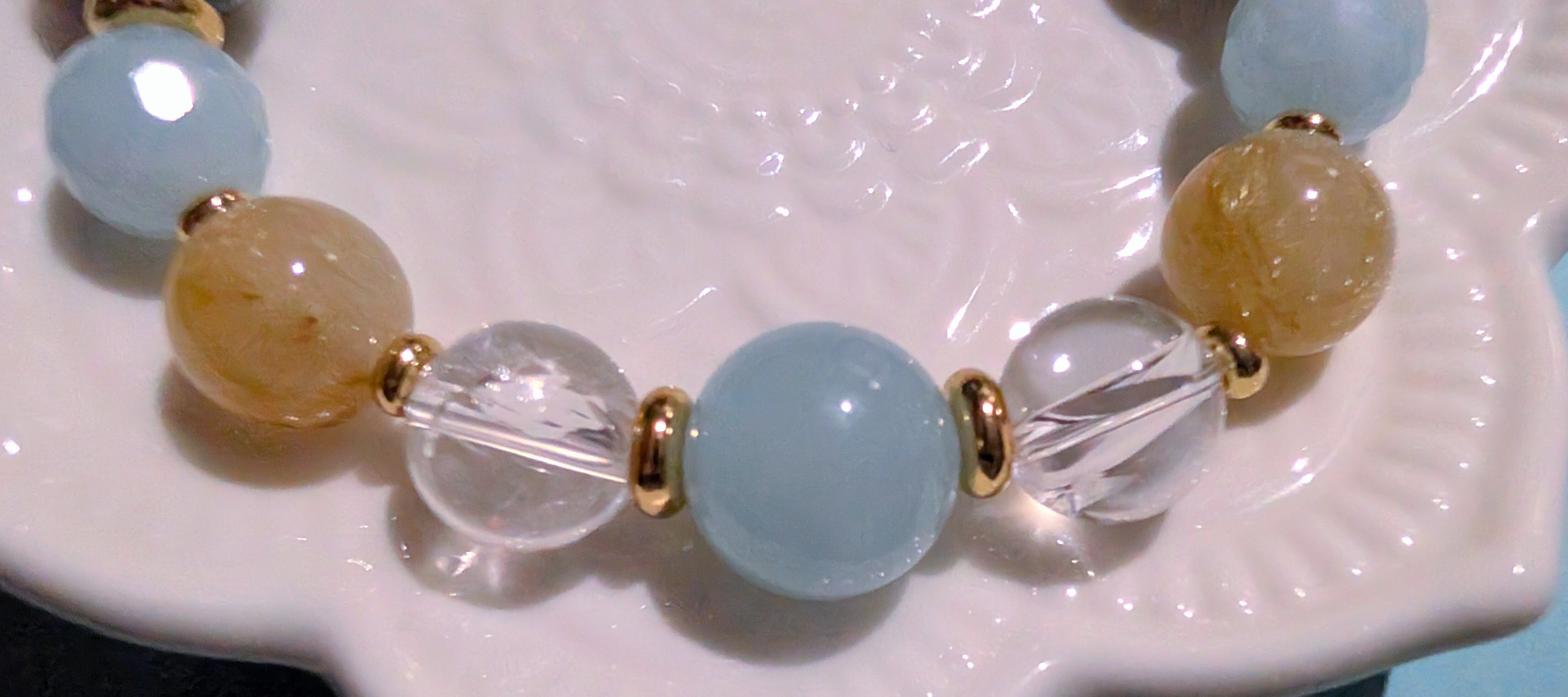 H様専用 売約済 オーダーブレスレット石の小箱オリジナル 龍鳳金彫水晶 ゴールドシラーラブラドライト アクアマリン ルチルクォーツ