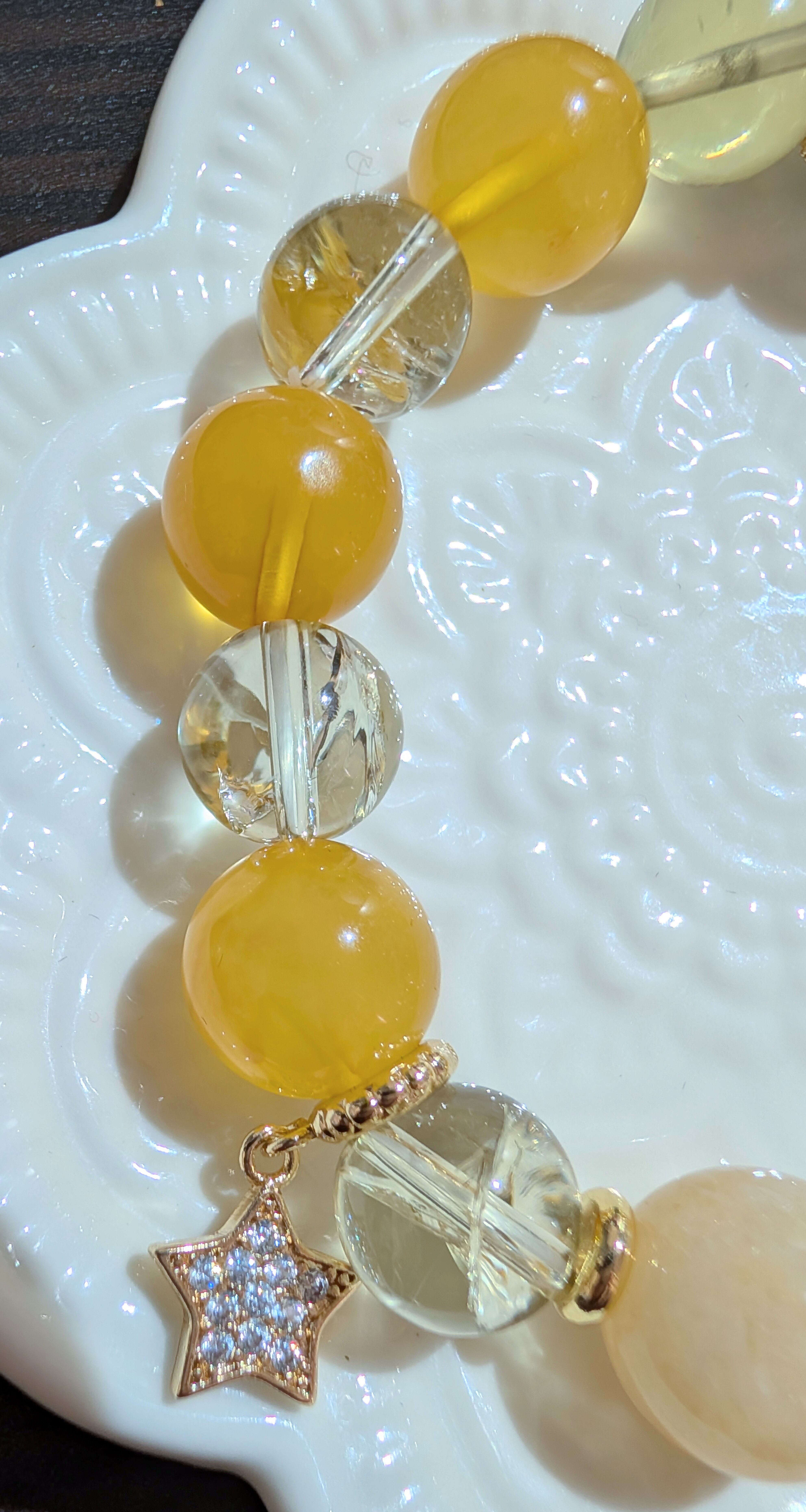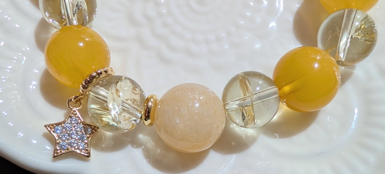 M様専用 オーダーブレスレット ハニーアンバー・ゼブラアマゾナイトシリカ・シトリンアイリス・シトリン・ルチルクォーツ☆ファントムルチルクォーツ・ドラゴンアゲートクォーツ(龍紋瑪瑙)・レッドライモナイト・オレンジタイガーアイ