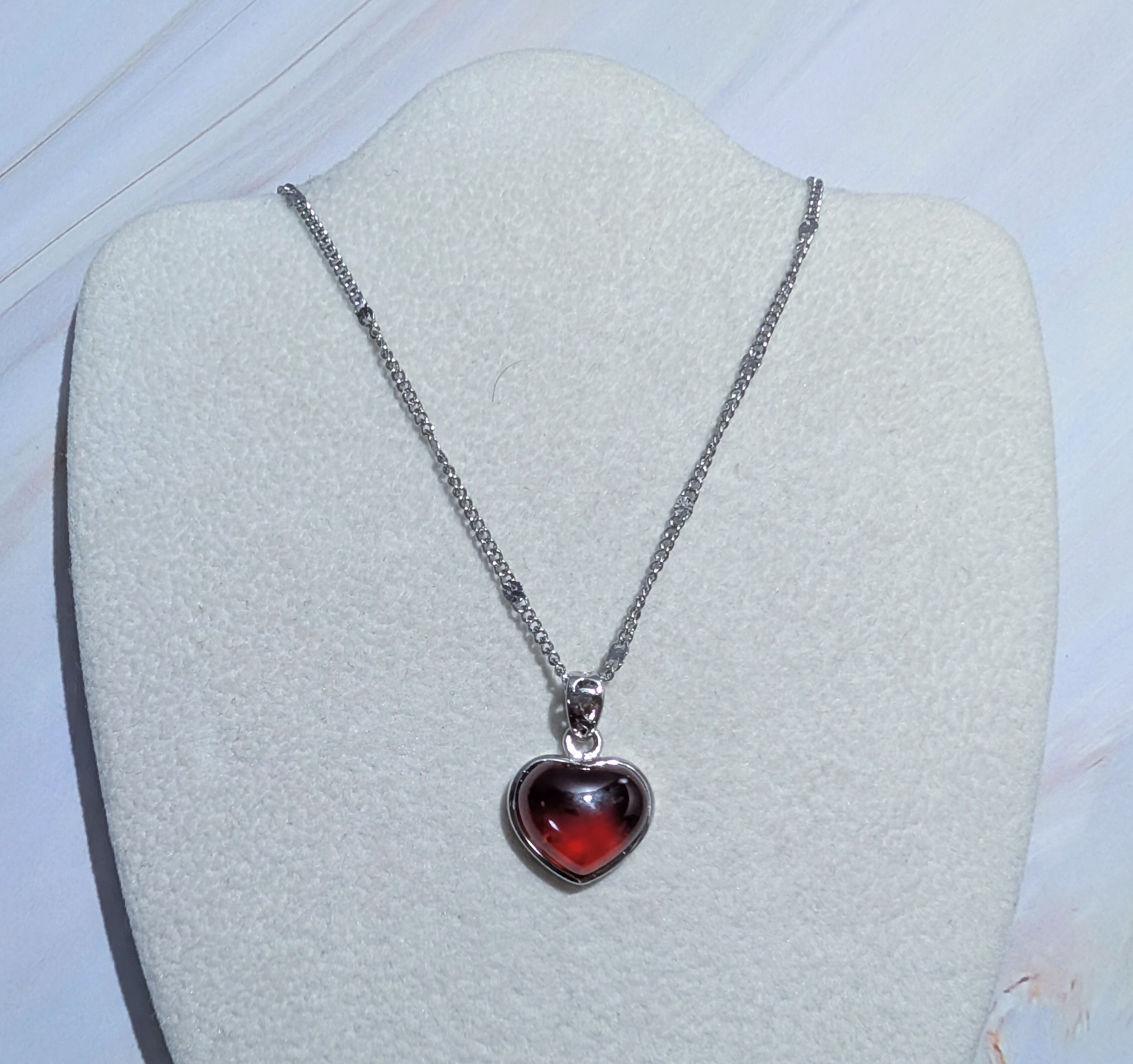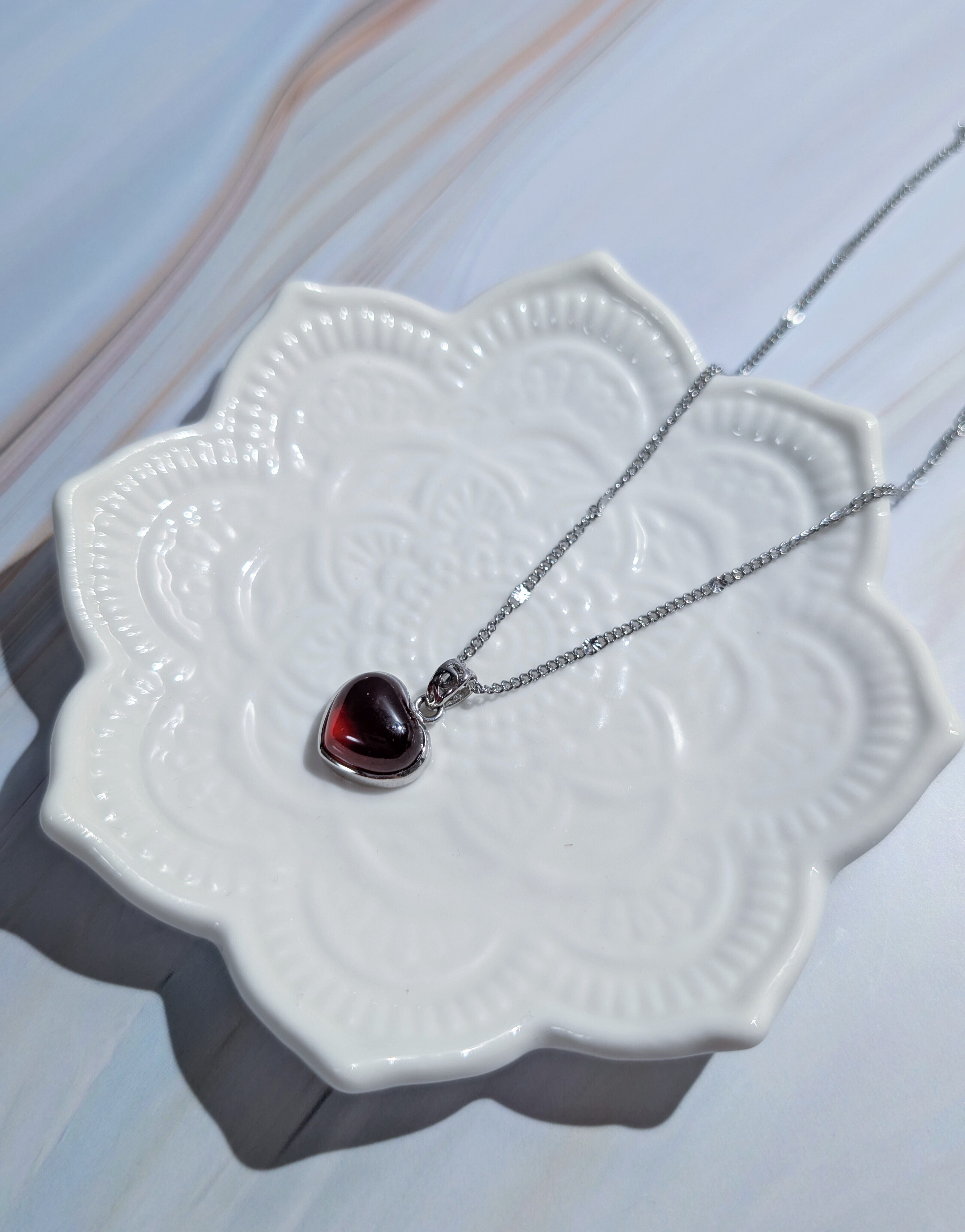 クリスマスセール ガーネットハートネックレス s925サージカルステンレス
