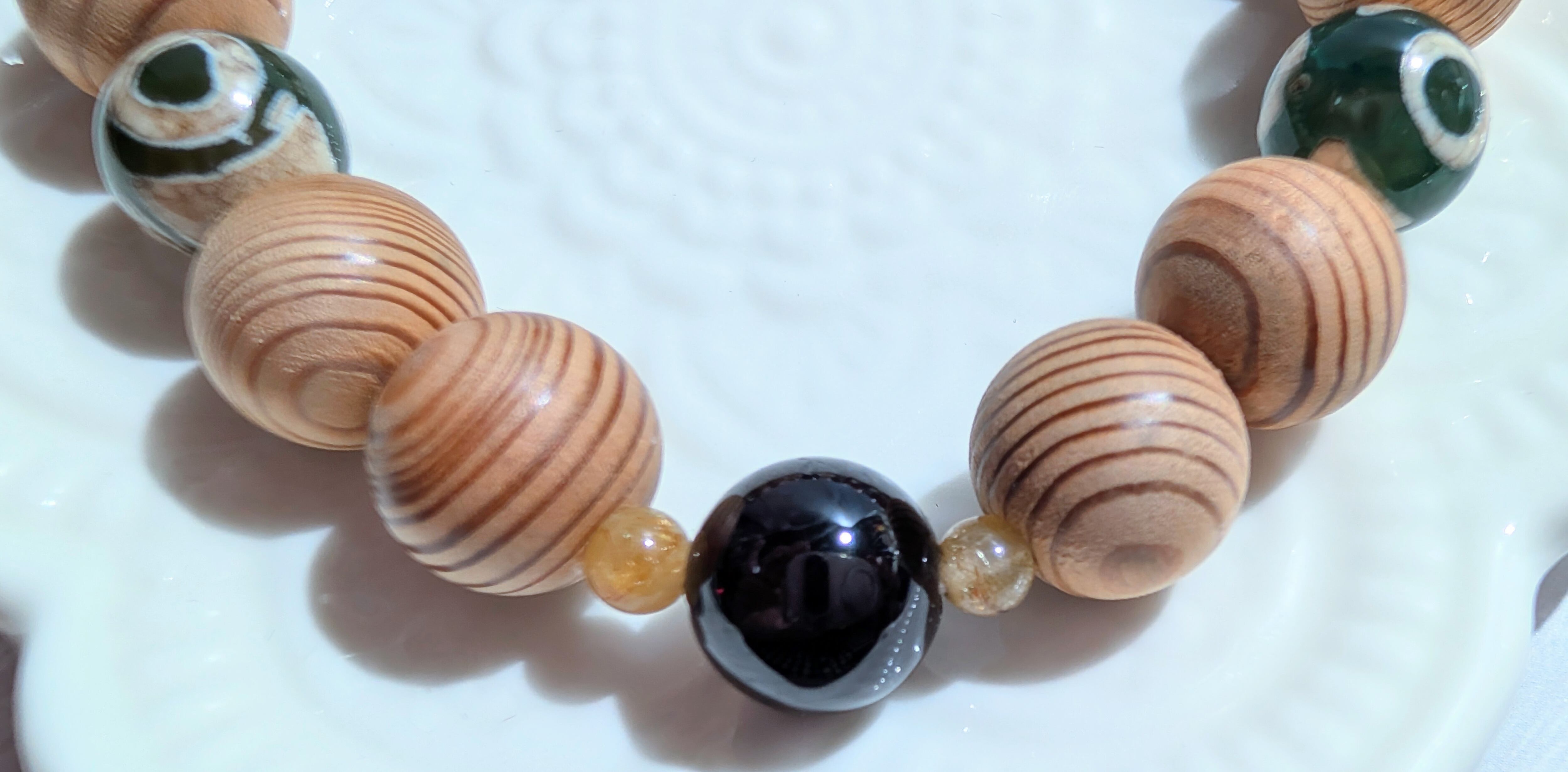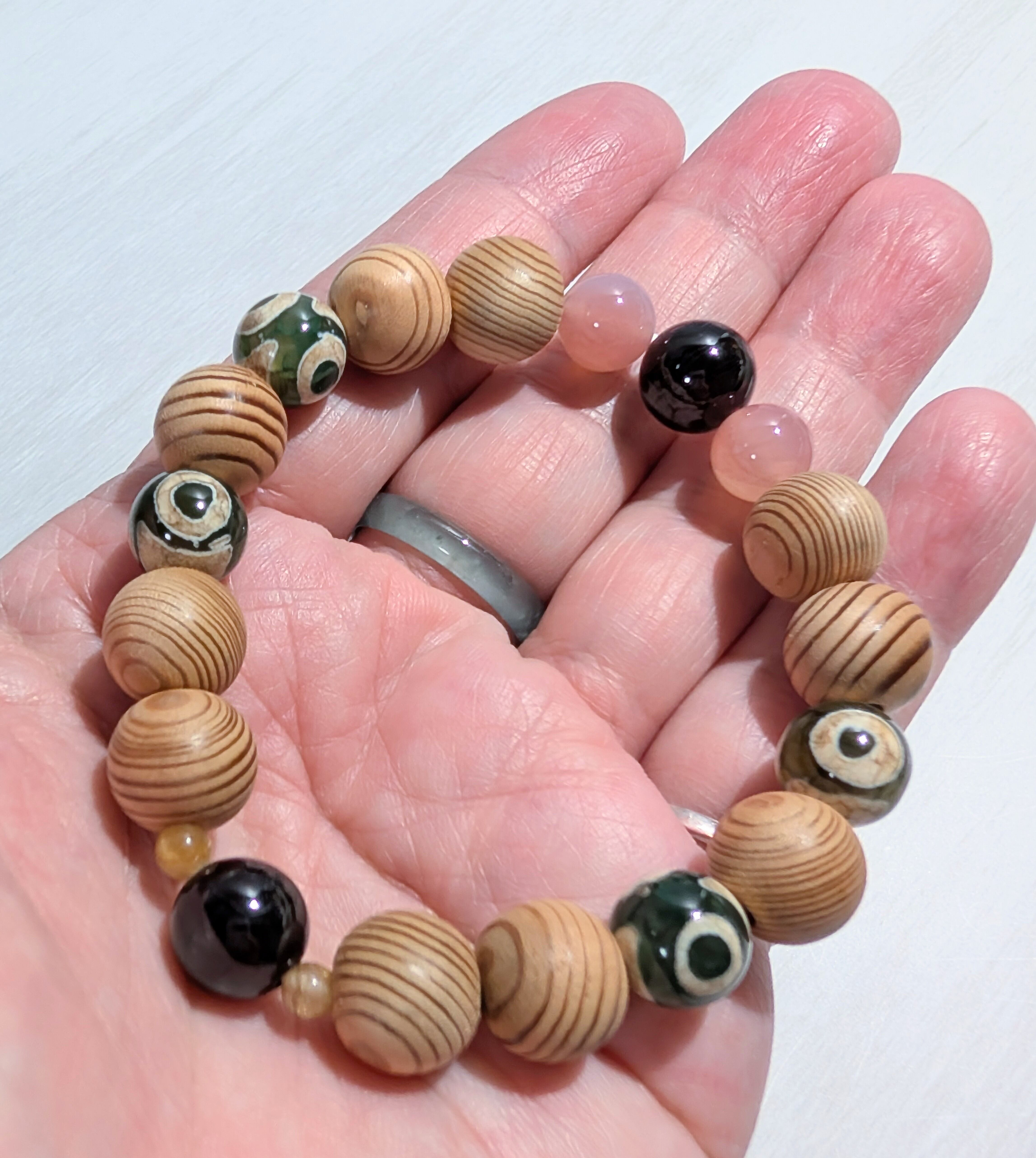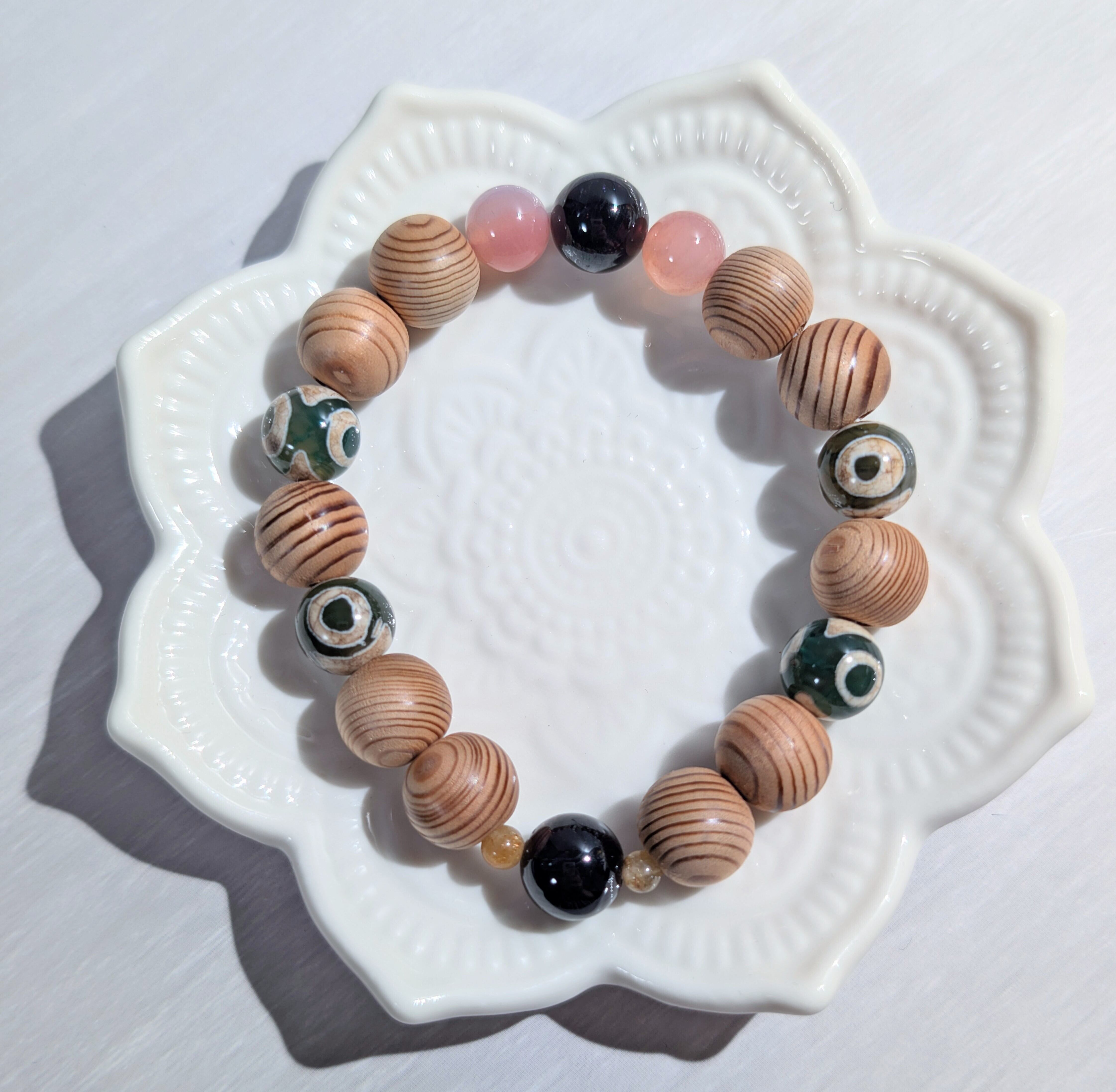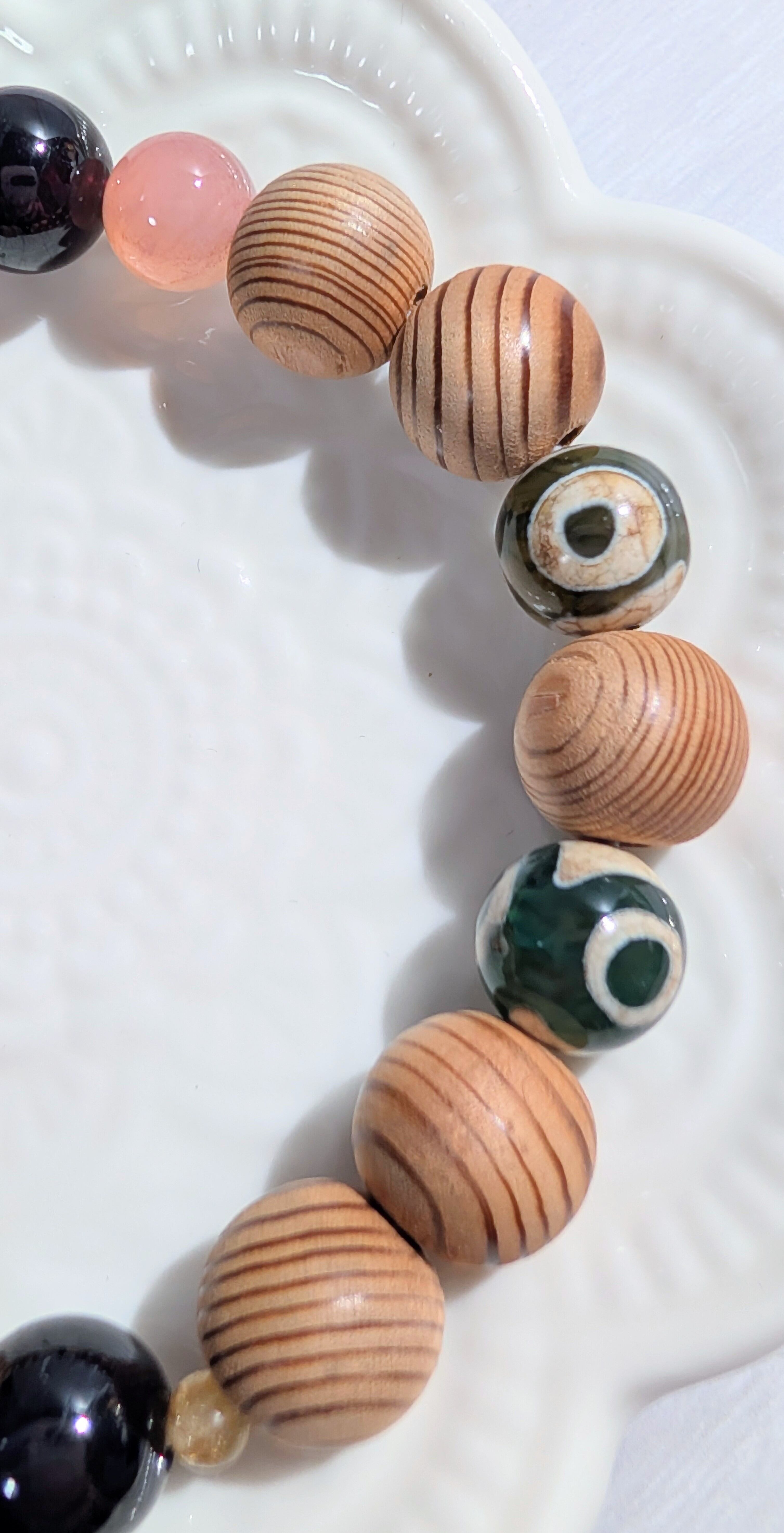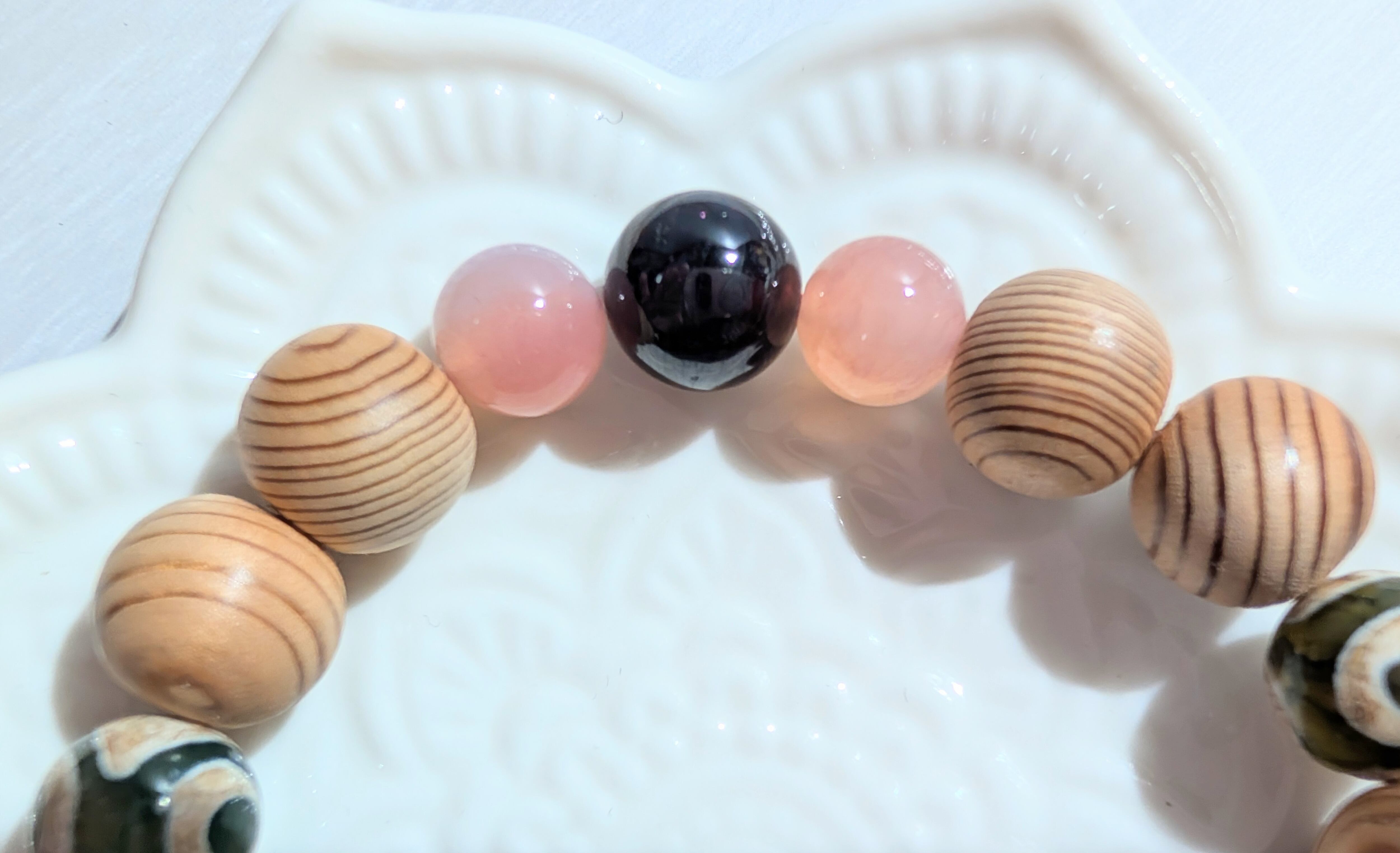 クリスマスセール 屋久杉ブレスレット 保証書証明品 ガーネット 塩源瑪瑙 ルチルクォーツ 三眼天珠