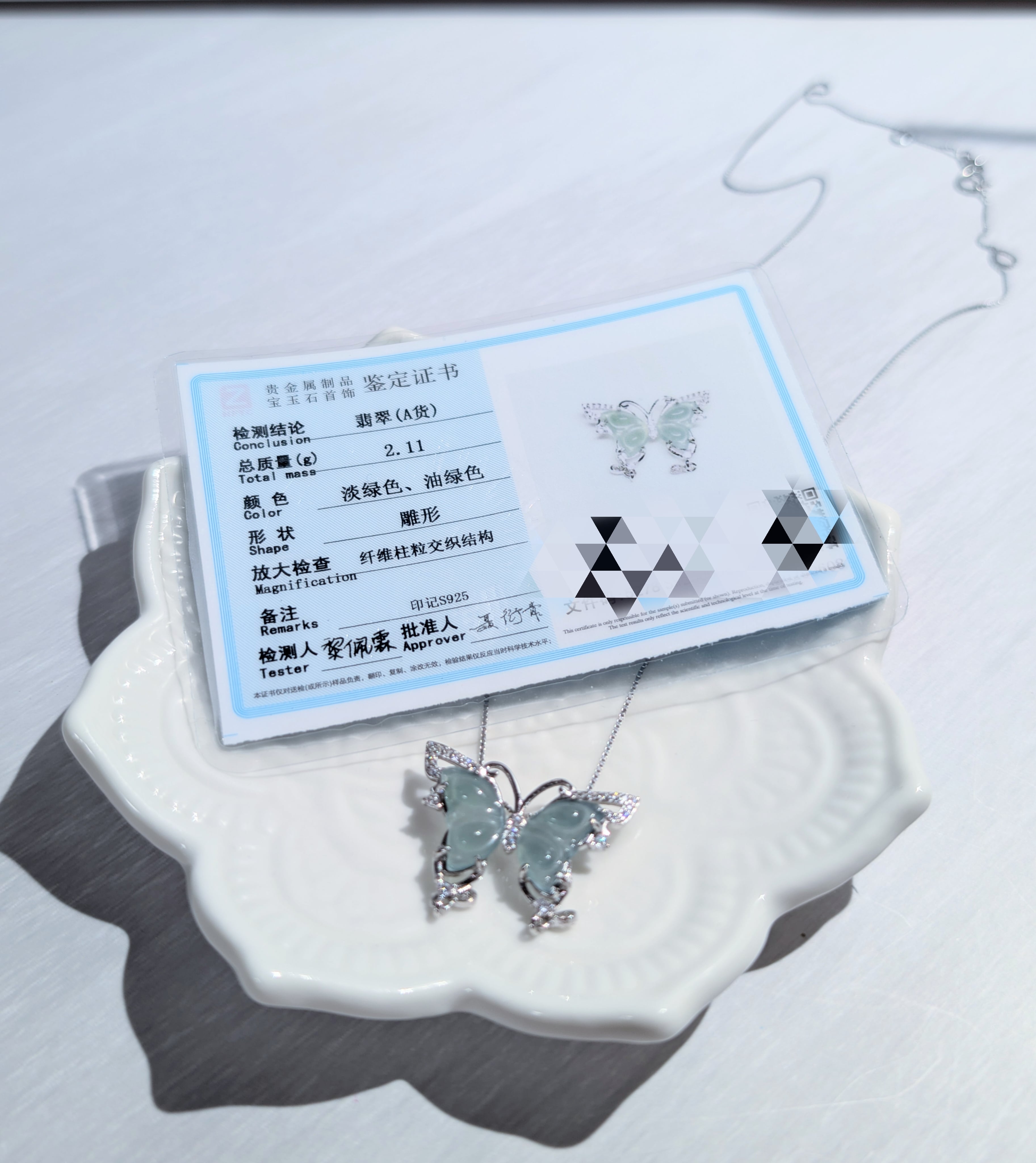クリスマスセール ハイグレード翡翠 鑑別書付き 蝶ネックレス