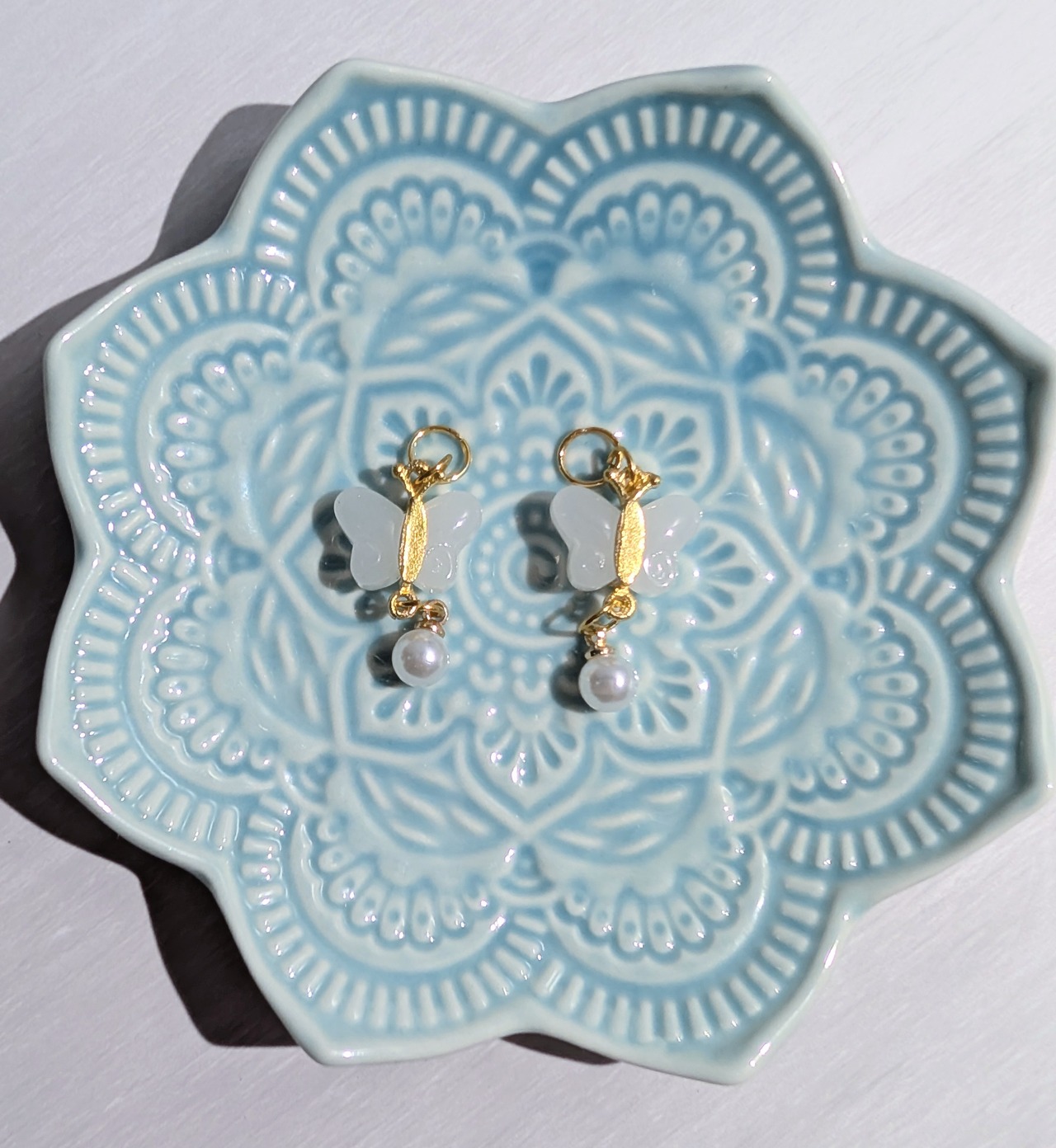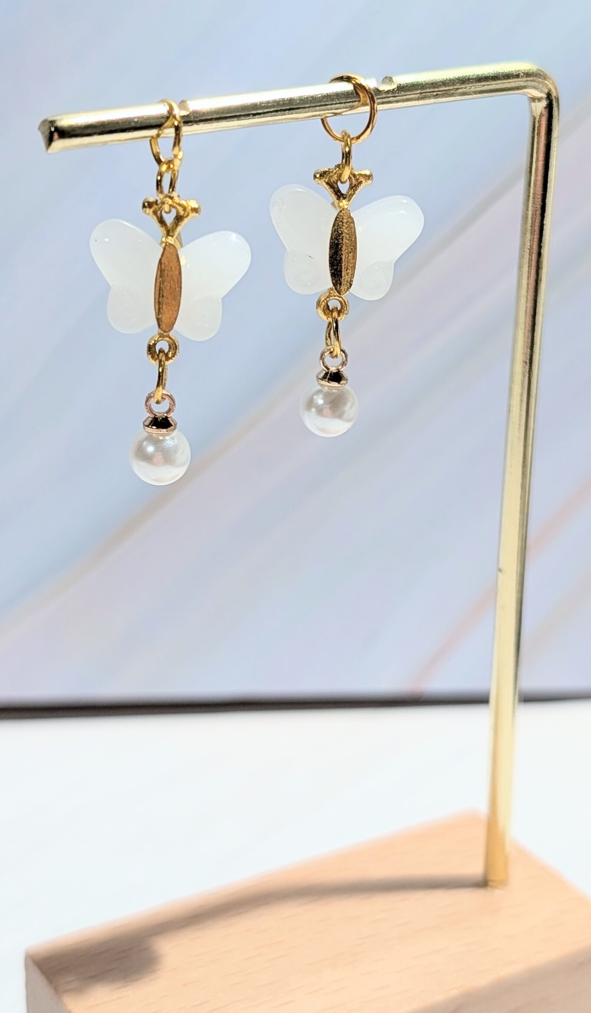 大セール!!2個で1セット!!1500円OFF!!スターダストピアス&白瑪瑙蝶ピアス(イヤカフ・イヤリング)