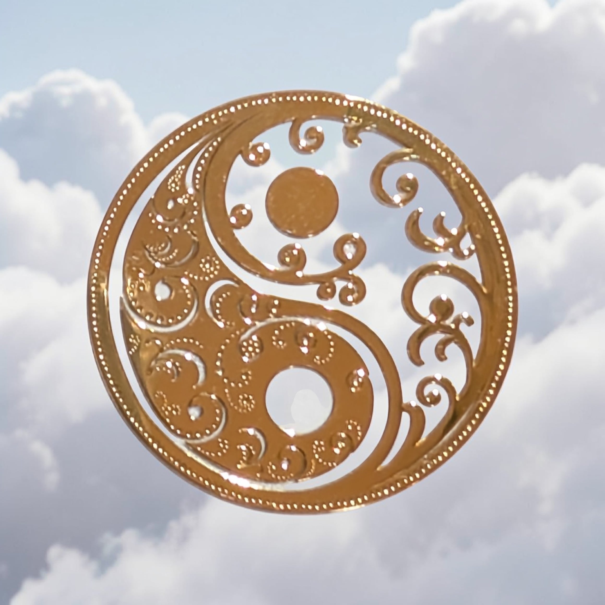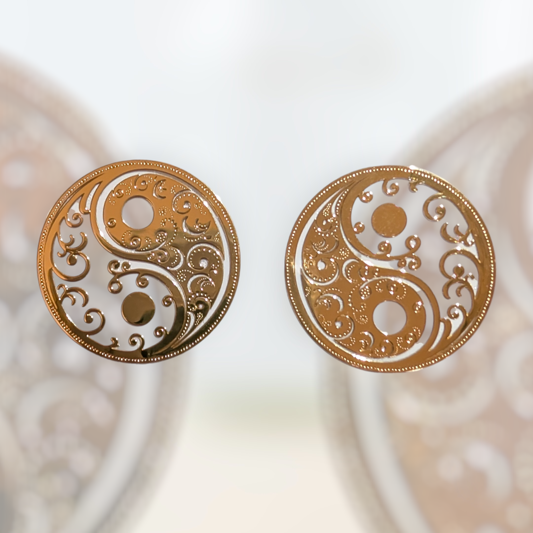古代より伝わる「陰陽」のシンボルを、繊細なアラベスク模様で表現した立体メタルステッカーです。万物の調和と巡りを意味する太極図をベースに、細やかな透かし彫りを施すことで、金属の重厚感とレースのような軽やかさを両立させました。