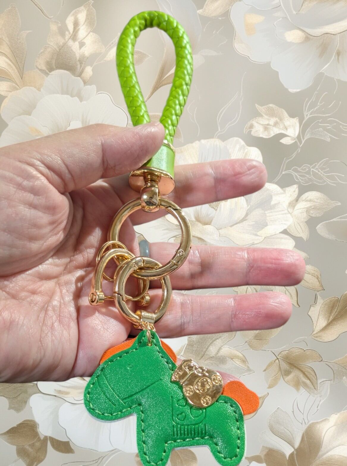 グリーンを基調としたデザインは、どんな色のバッグとも相性抜群。鍵をまとめるキーホルダーとしてはもちろん、バッグチャームとしてコーディネートの主役にするのもおすすめです。