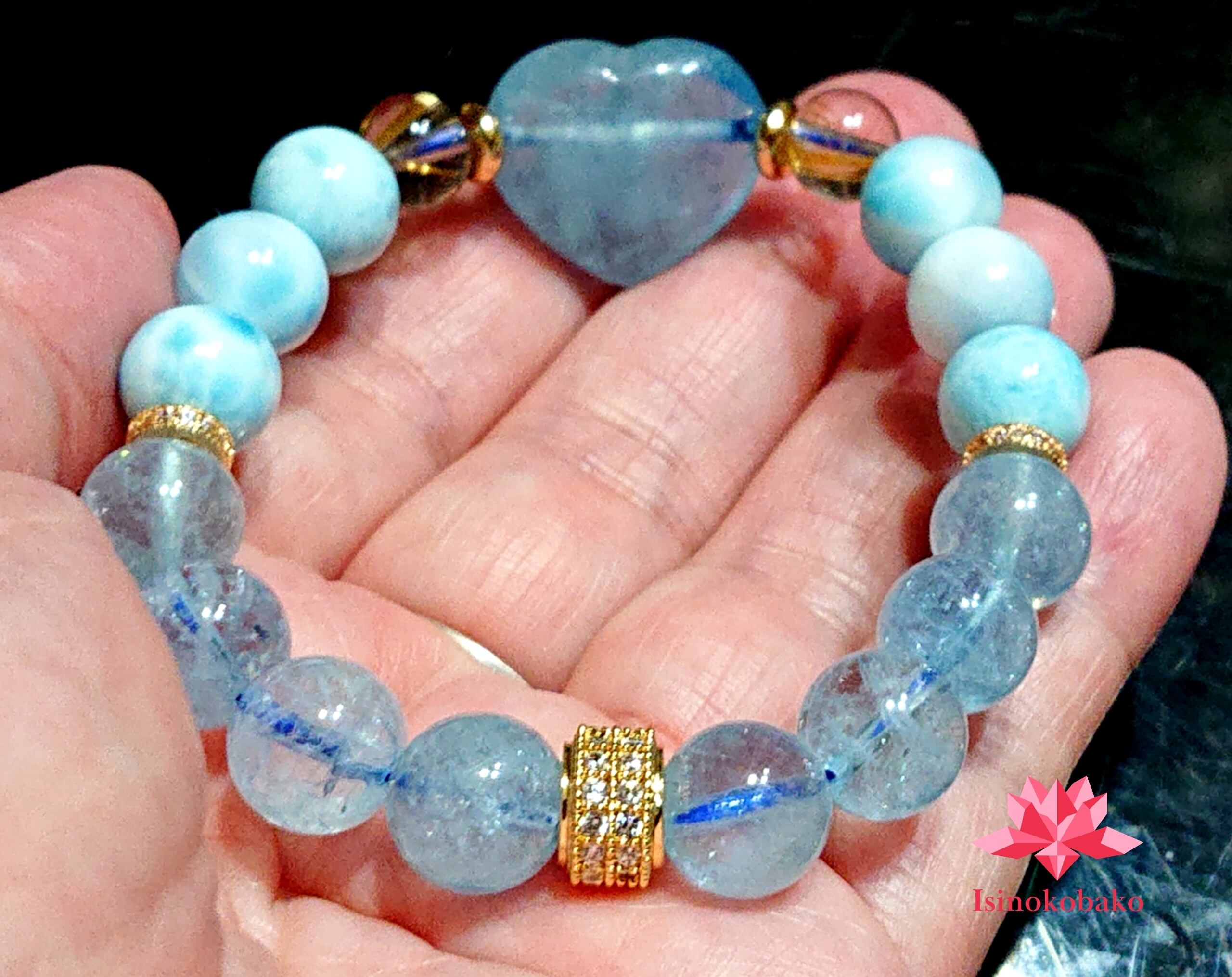限定販売1本!!アクアマリン&AAAラリマーブレスレット アクアマリン ハート ブレスレット