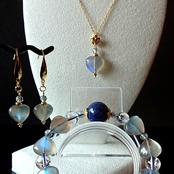 シラー(輝き)が美しいラブラドライトのハートを香水瓶のモチーフにしてネックレスにお作りしました。