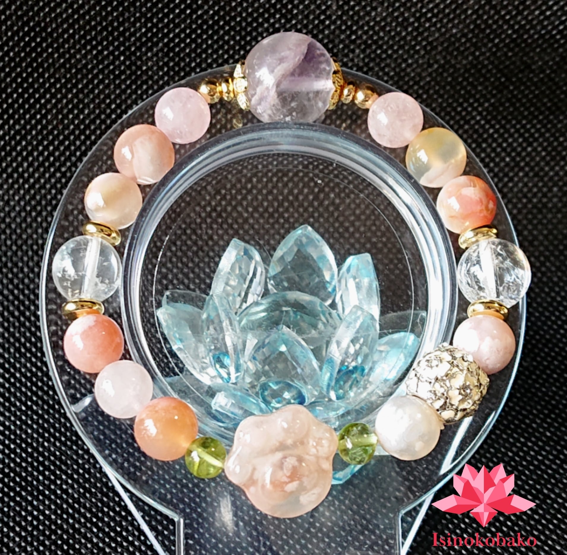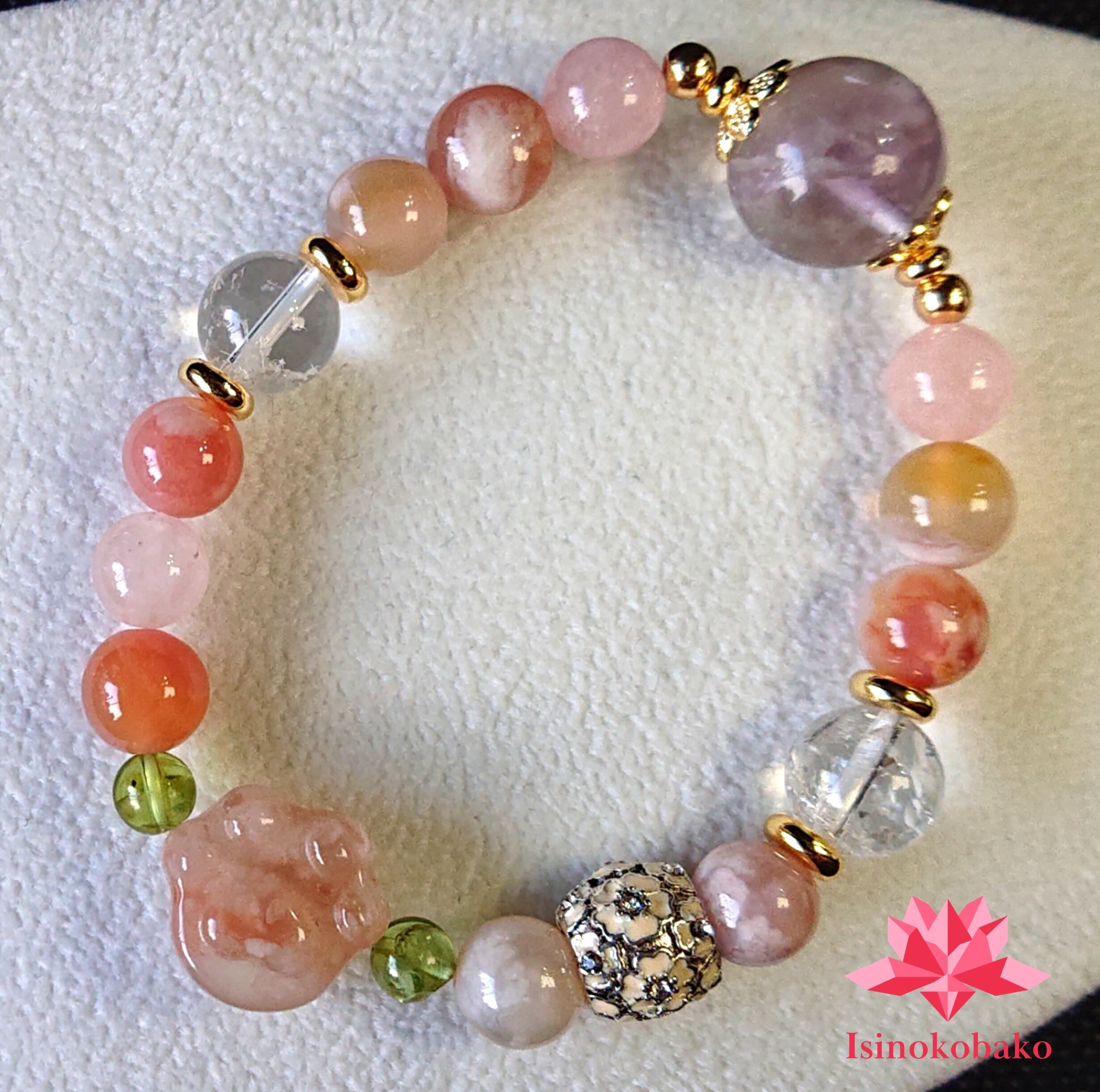 ガーデンアメジスト 桜瑪瑙 桜瑪瑙肉球 モルガナイト ペリドット アイリスクォーツ ブレスレット 天然石