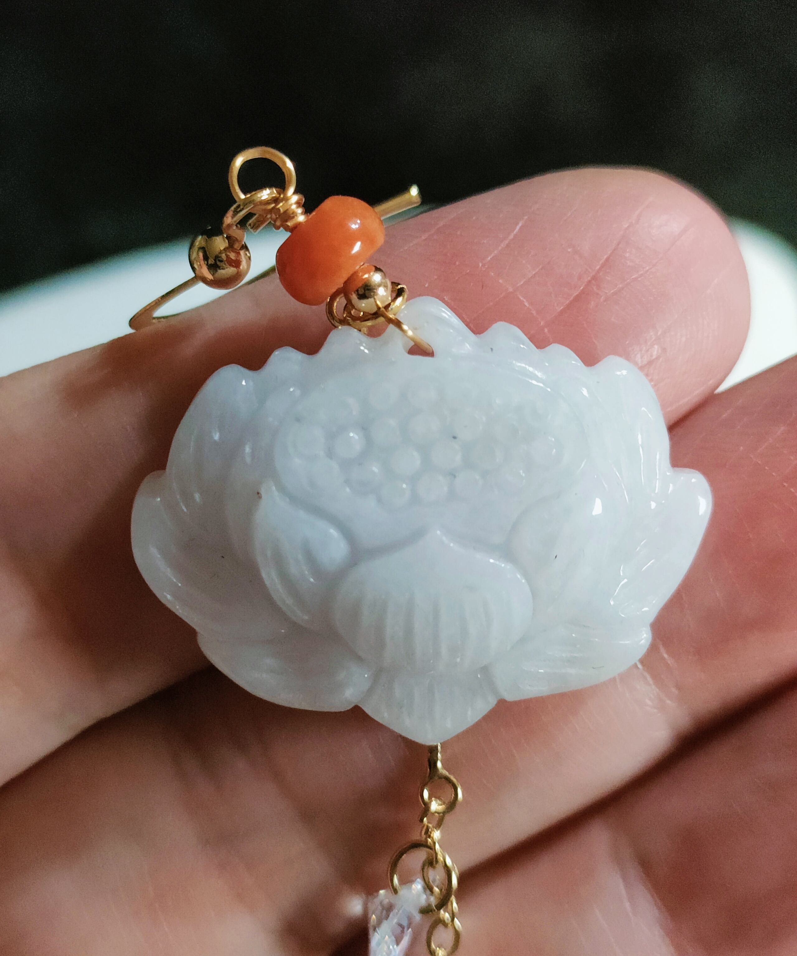 白翡翠蓮チャームの可愛いピアスが新登場!!
