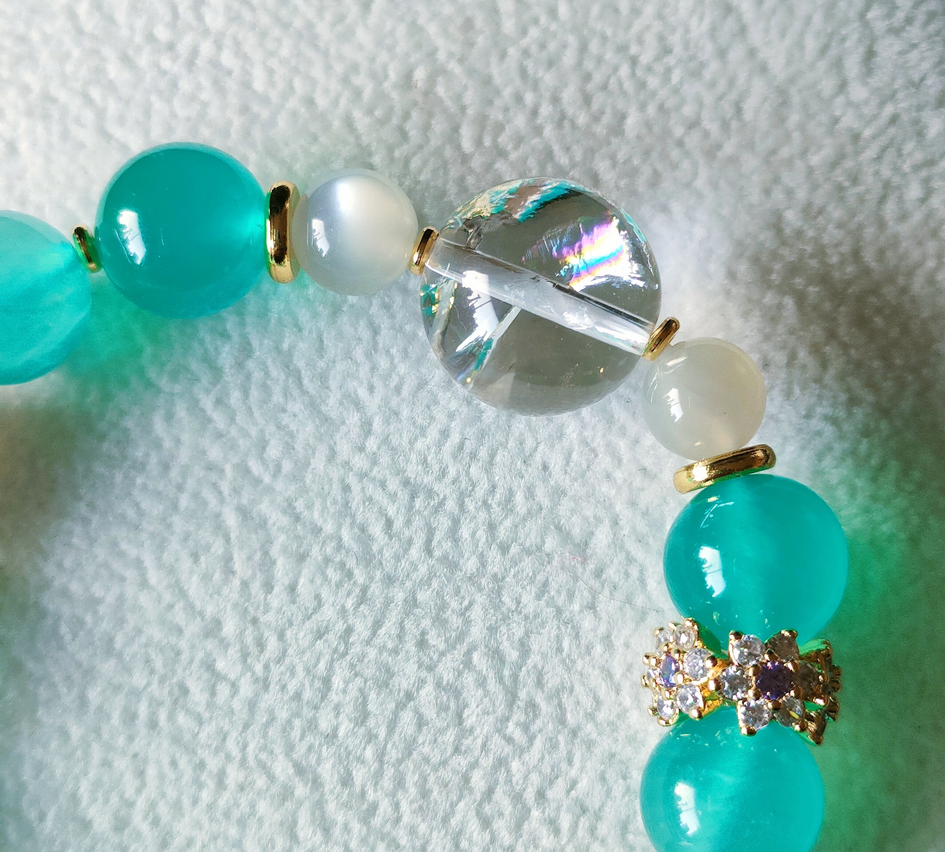希望と幸福へ導く 虹入り アイリスクォーツ コスモ ブレスレット アイスアマゾナイト ムーンストーン