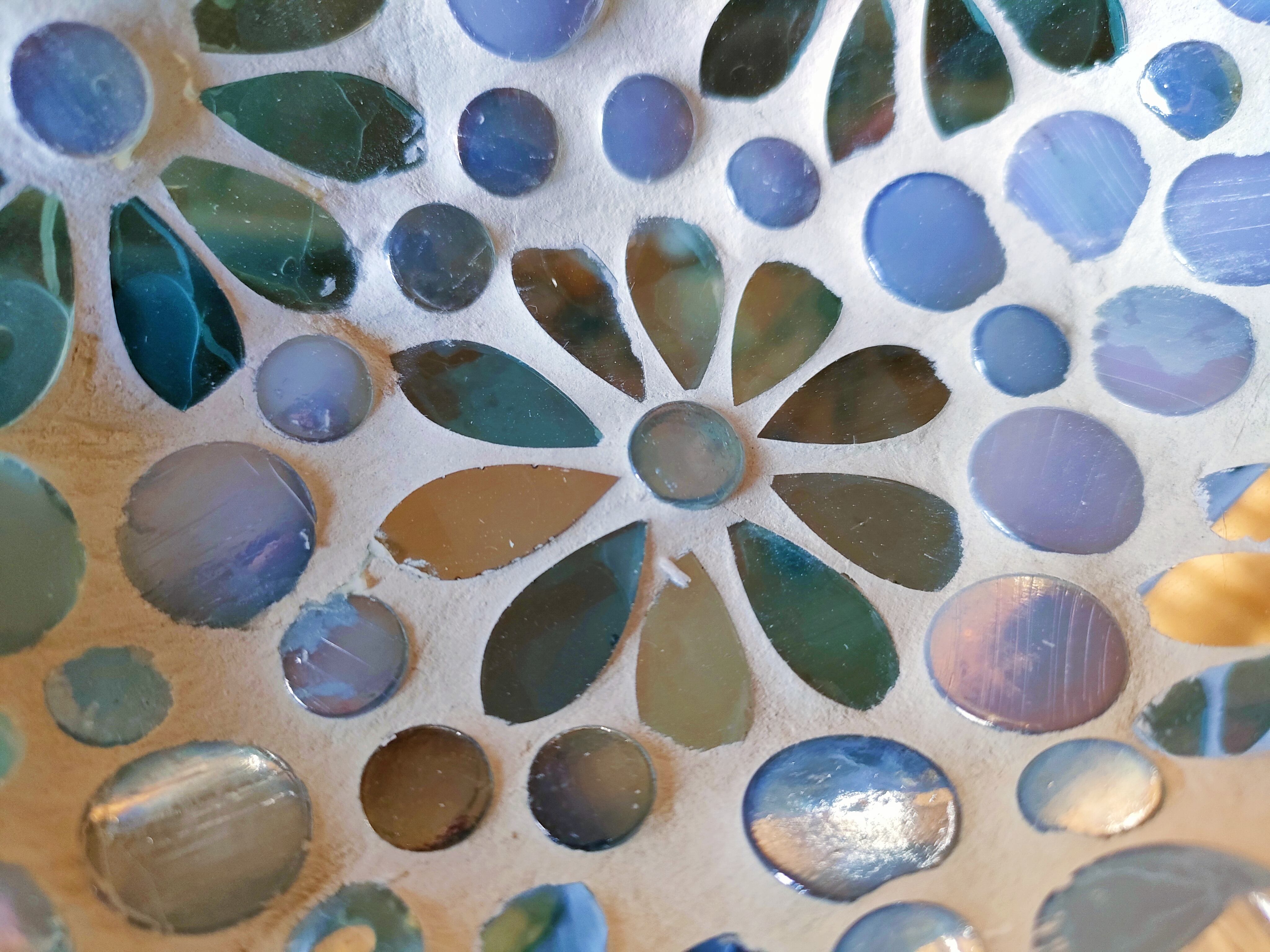 美しい貝殻を薄くスライスしプレートに貼り付けることで、ミラーのように輝き、ミラー効果を持つことで邪気を払います。