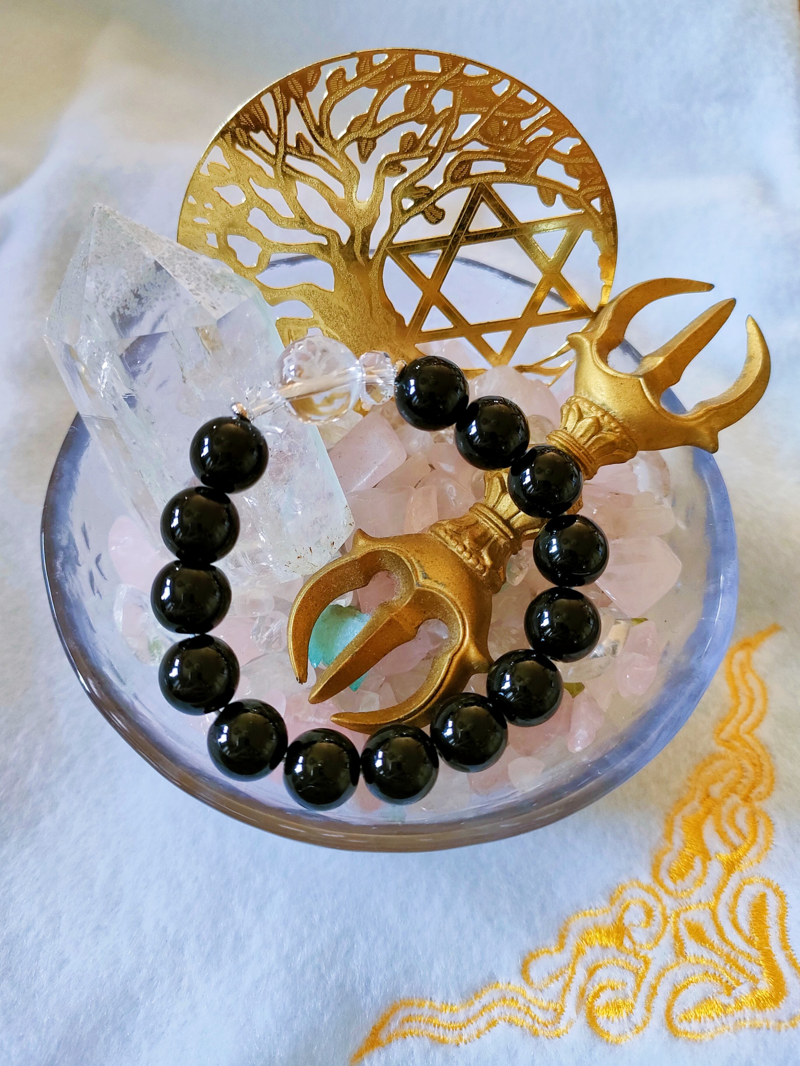 N様専用 売約済 オーダーブレスレット モリオン&蓮素彫り 蓮 お念珠ブレスレット 高波動お直し ゴム交換&ホワイトセージ・大神神社ご神水・クリスタルチューナ済
