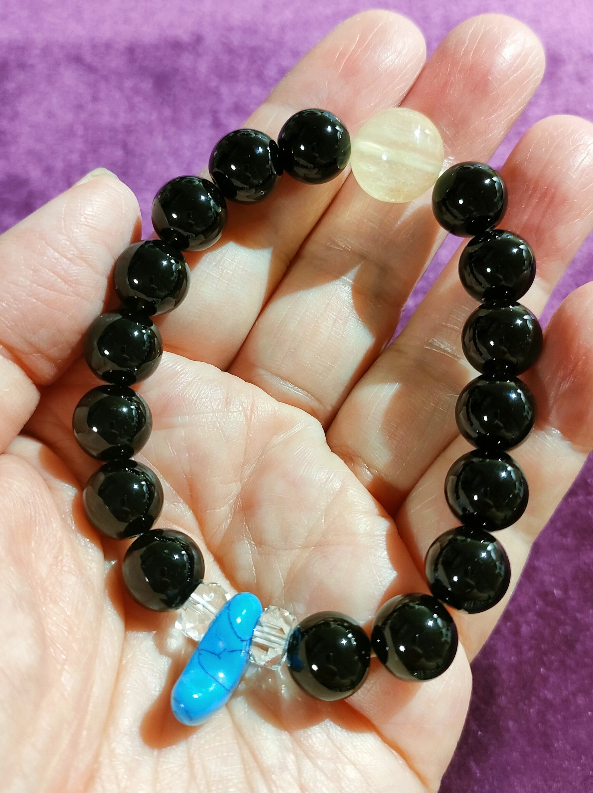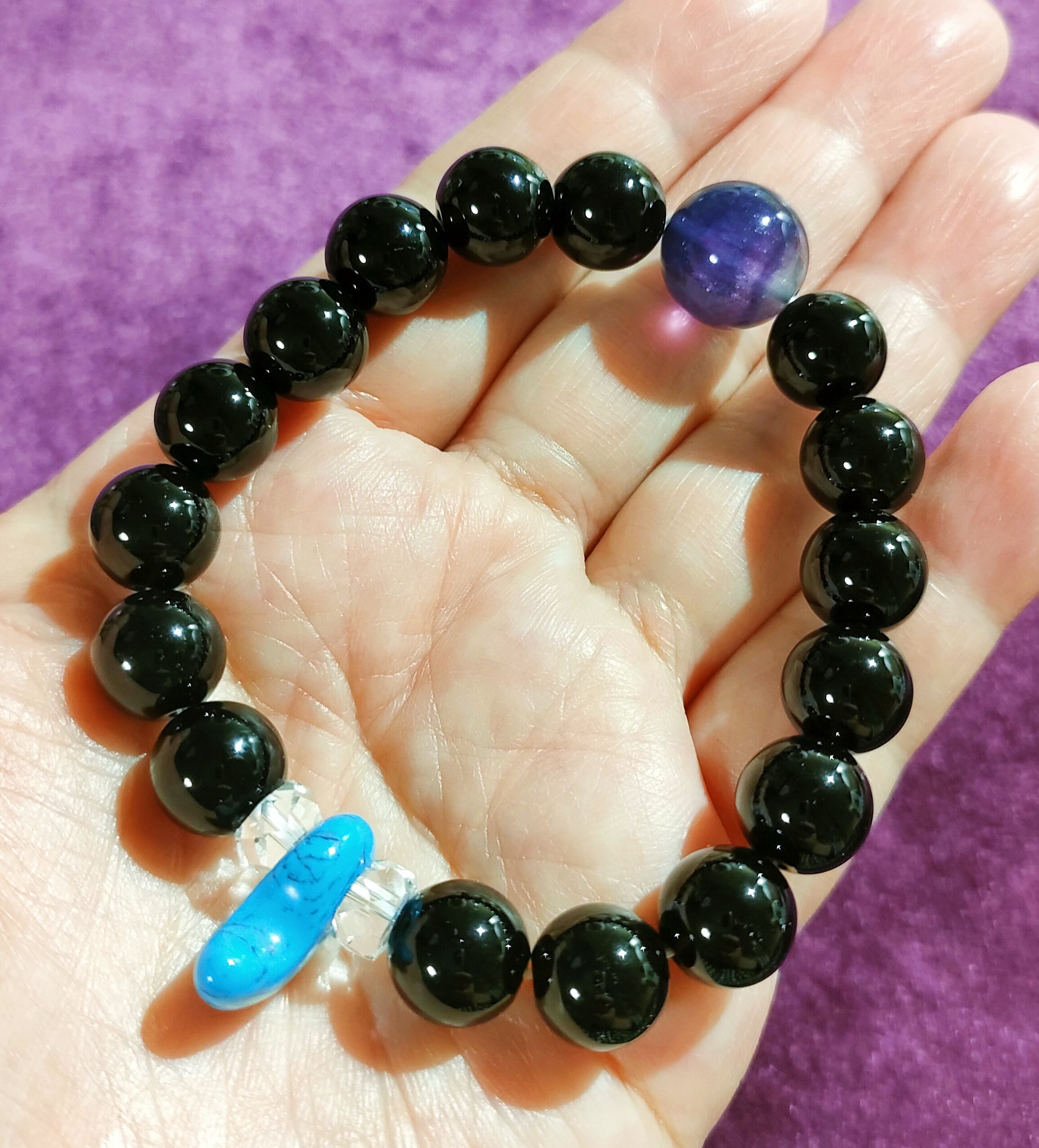 「最強邪気払い開運再生復活モリオン&ターコイズ レインボーフローライトブレスレット」