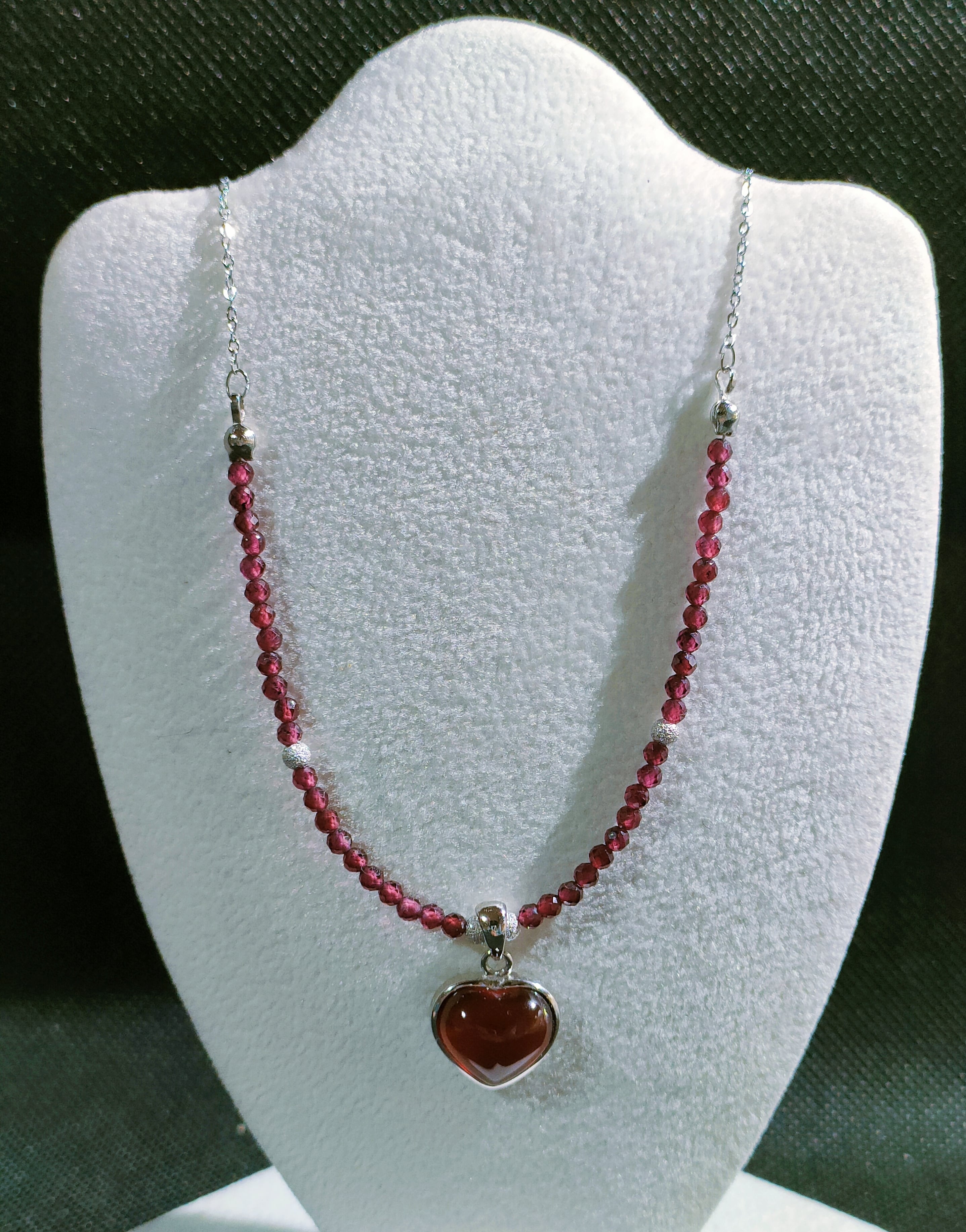 サマー大セール!! クーポン対象 ガーネット ネックレス モザンビーク産 AAAランク ガーネット ぷっくりハート ネックレス ガーネット