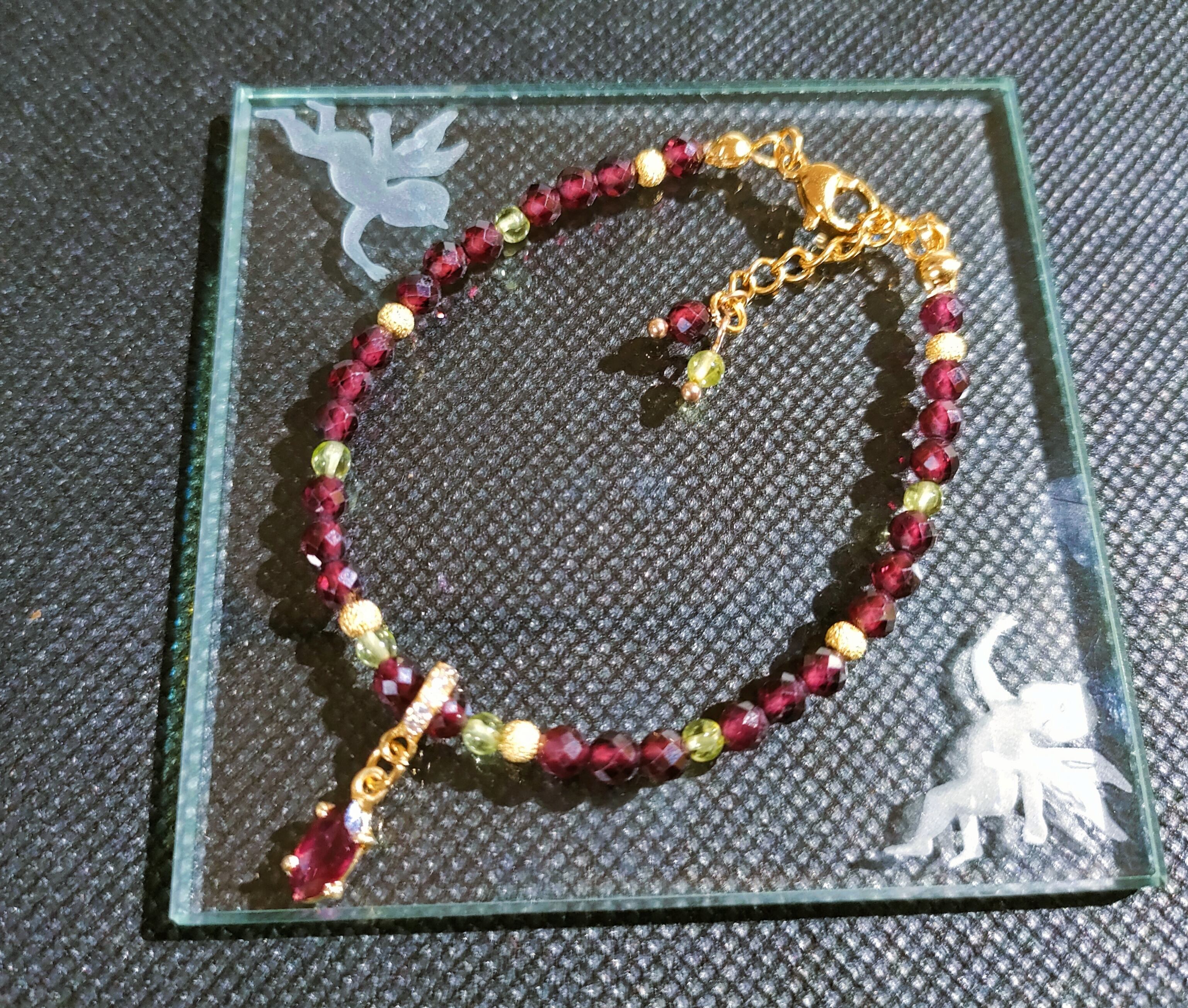 ・宝石質ガーネット+ペリドット ブレスレット&アンクレット