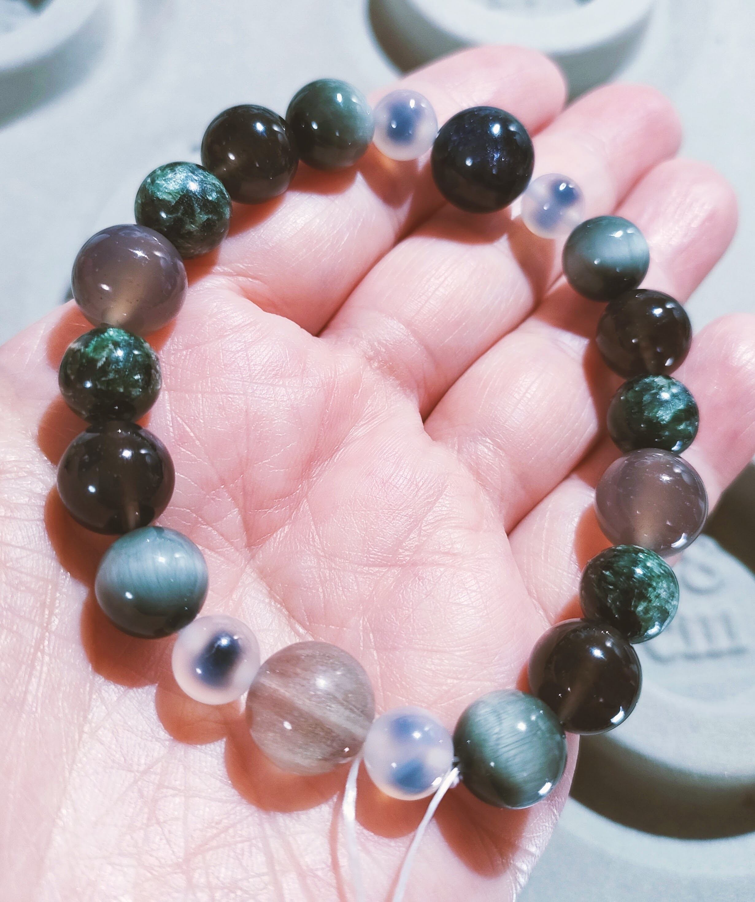 H様専用 売約済!!グリーンレース緑紋石 エンジェルフェザーライト 翡翠 グリーンエンジェライト アイスアマゾナイト エンジェルラダークォーツ ペリドット グレーラビットヘアルチル グレーアゲート タピオカアゲート アイオライト イーグルアイ チンターマニストーン セラフィナイト