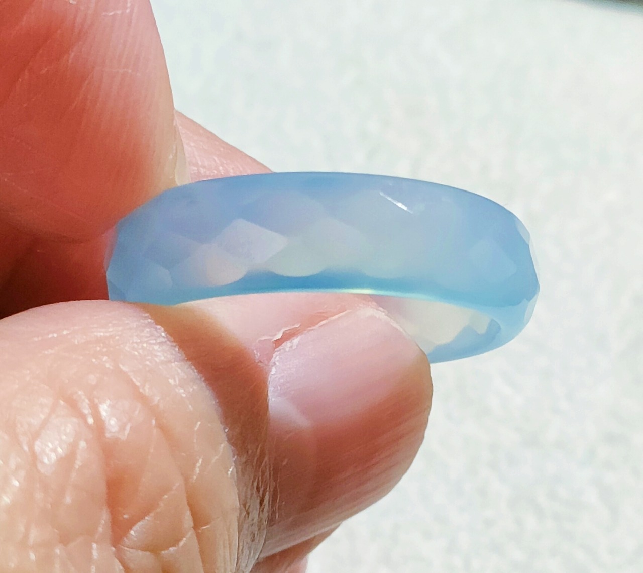 16号サイズ 夏色 瑪瑙 スカイブルー カットリング 指輪