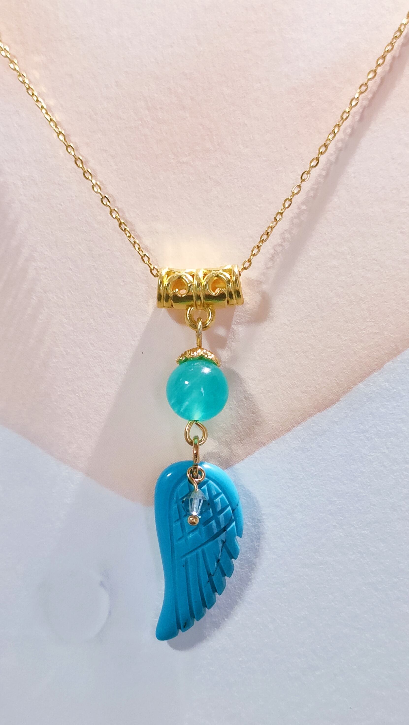 ☆送料無料セール☆幸福と希望をチャージ ターコイズ 羽 ネックレス