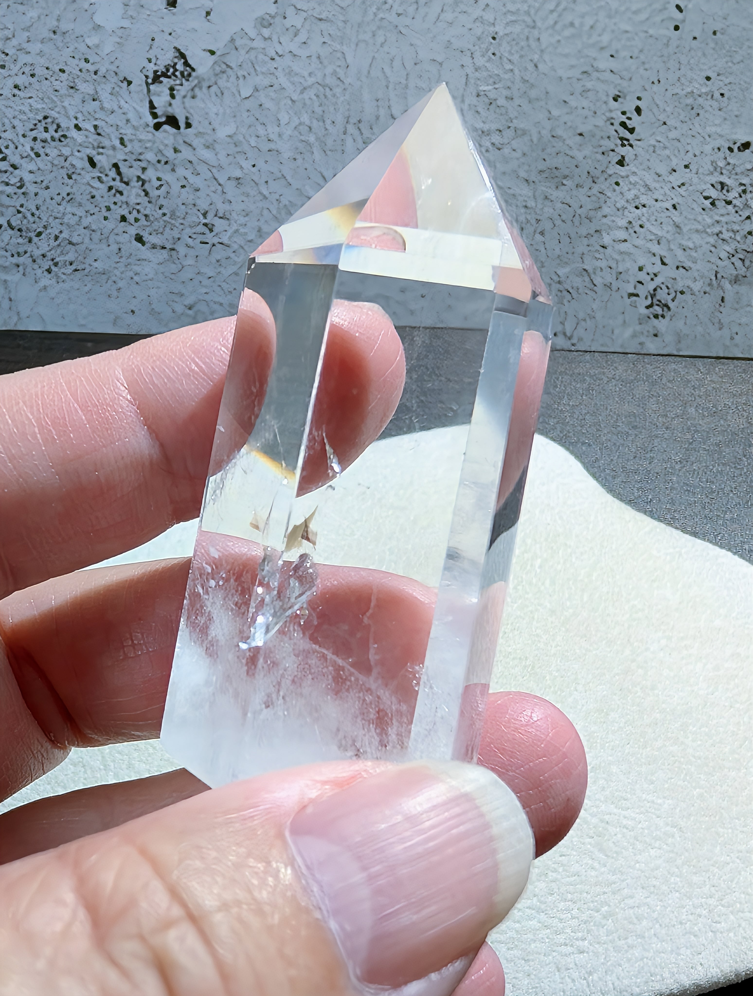 水晶ポイントを片手に持ち、先端を浄化したい対象物に向け(ポイント水晶は先端部からエネルギーを集中的に放出します)もう片方の手に、クリスタルチューナーを持ち水晶の平らな面を軽く打ちます。