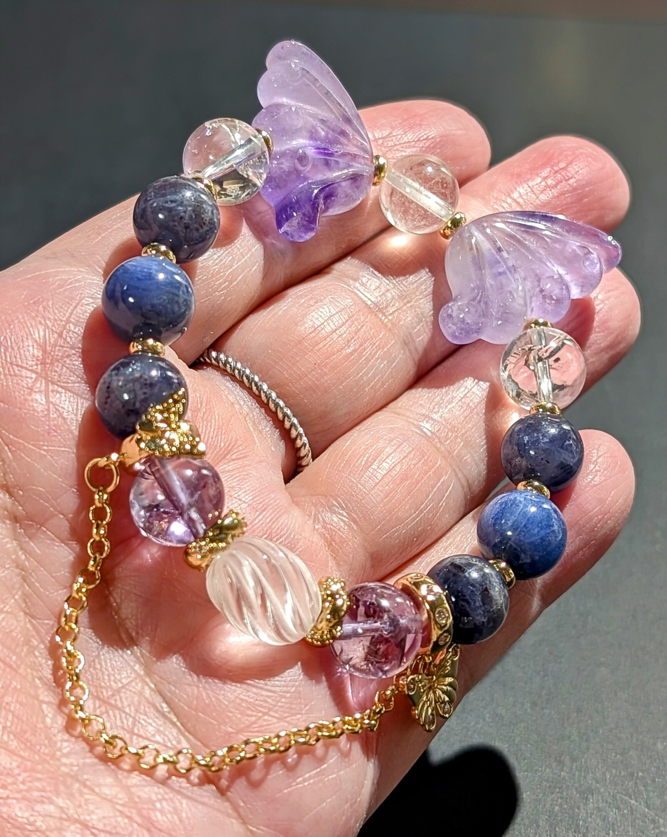 風の時代 スペシャル ブレスレット レムリアンシードクリスタル アイオライト タンザナイト アイリスアメジスト ラベンダーアメジスト蝶の羽