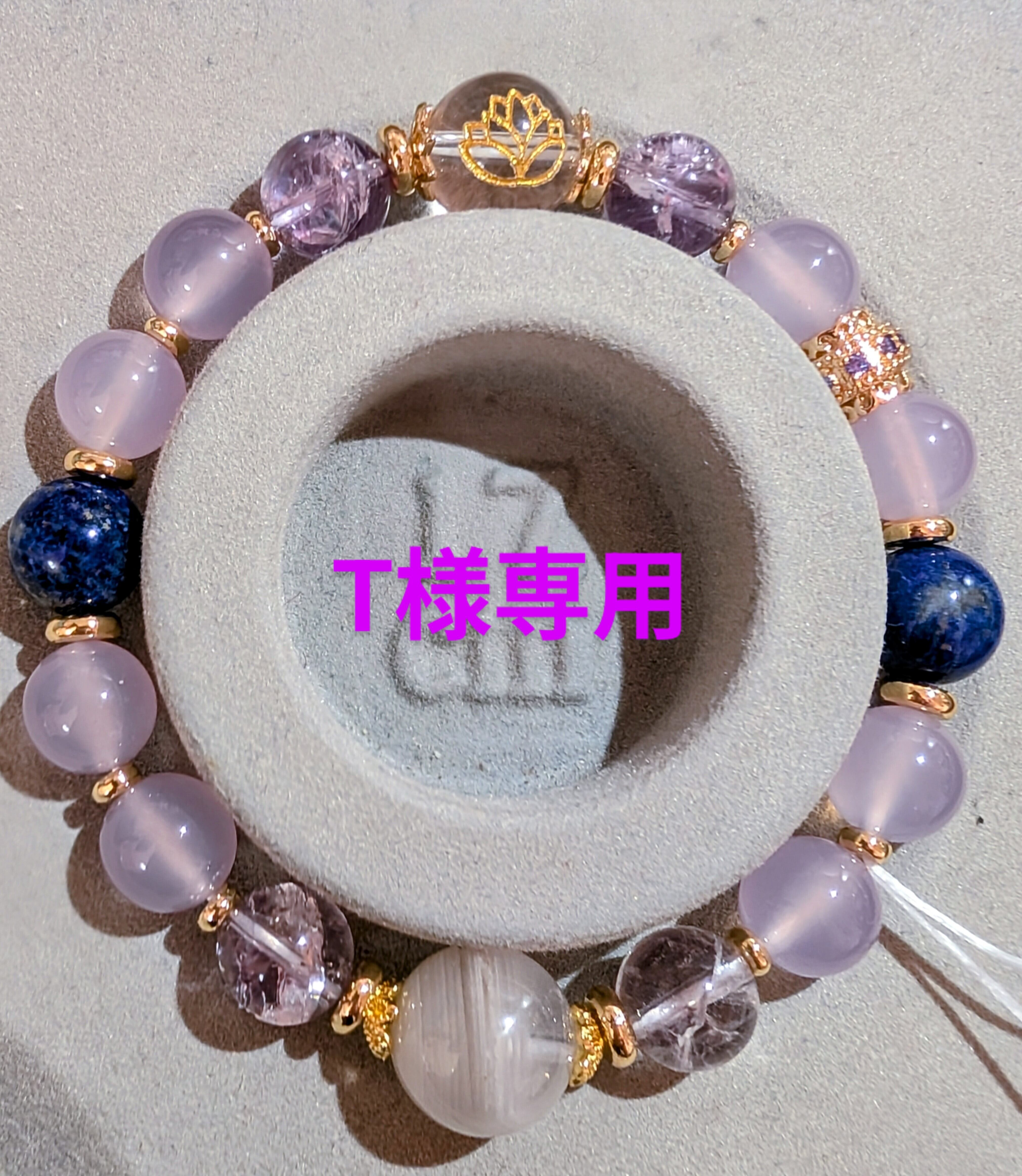 T様専用 売約済!オーダーブレスレット 石の小箱オリジナル蓮金彫り本水晶 千層瑪瑙 ラベンダーカルセドニー ラピスラズリ ラベンダーアメジストアイリス